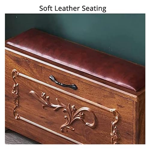 Shoe Storage Bench with Cushion for Entryway, Bench with Hidden Shoe Rack Solid Wood Shoe Cabinet Shoe Cabinet Storage Table Bedroom Shoe Stool Shoe Cabinet Seat(Brown,90x24x42cm)