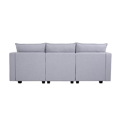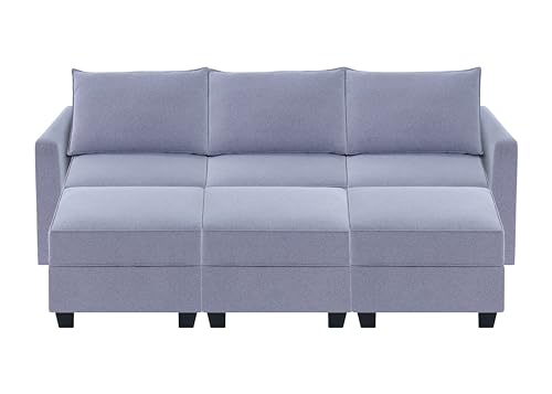 Naomi Home Elizabeth Modular Sofa Sectional Sleeper Couch with Ottoman Air Leather - 6-Seater Sofa with Storage Seat - Convertible Sectional Sofa Couch Bed for Living Room - Caramel