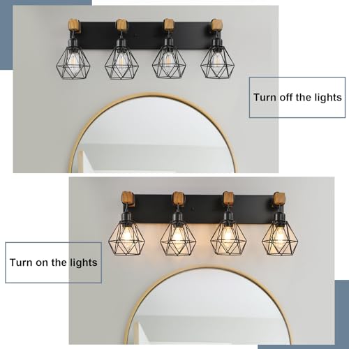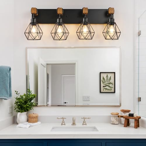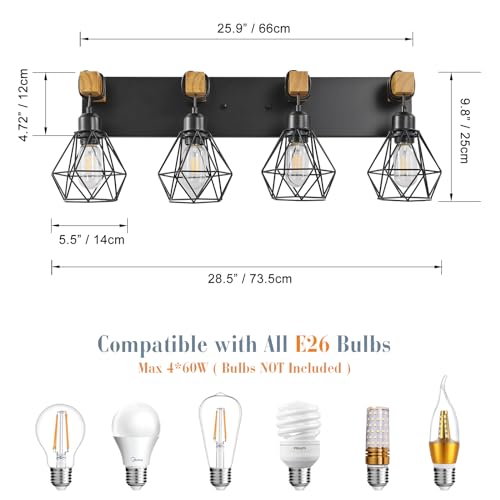 Farmhouse Vanity Light for Bathroom, 5-Light Wood Bathroom Vanity Light Fixtures Over Mirror, Rustic Sconces Wall Lighting with Metal Lampshade for Living Room, Bedroom, Hallway
