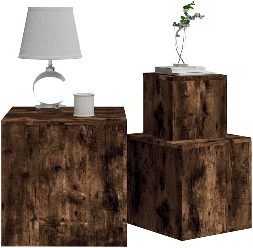 Side Tables 3 pcs Smoked Oak Engineered Wood, Entertainment Center Outdoor Table Sofa Table Narrow Side Table Suitable for Living Room Foyer Bedroom Office
