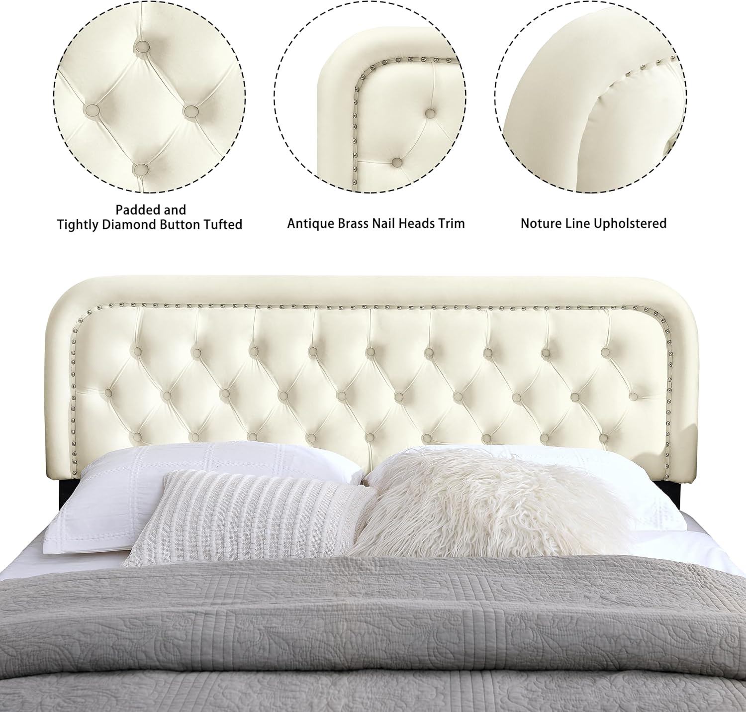 Tufted Upholstered Headboard Queen Size,Bed Headboards for Adjustable Head Boards Mid Century Modern Velvet Head Board Bedroom Free Standing Fabric Stand Alone (Beige,62"*45")
