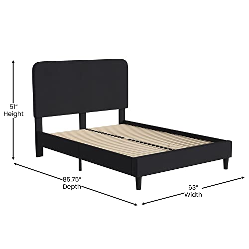 Flash Furniture Addison Platform Bed - Charcoal Fabric Upholstery - Full - Headboard with Rounded Edges - Wood Slat Support - No Box Spring or Foundation Needed
