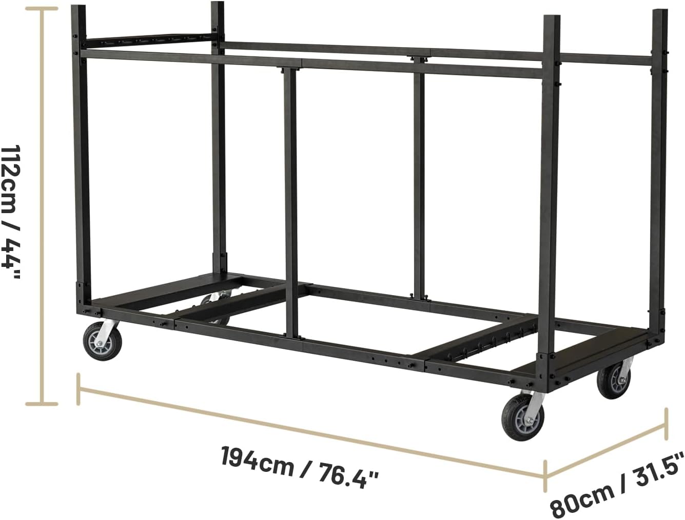Folding Chair and Table Dolly Cart with 4PCS Casters, Rolling Storage Rack Trolley for Folding Table & Round Table, Ideal for Commercial Home Kitchen Party Desk (Black)
