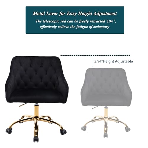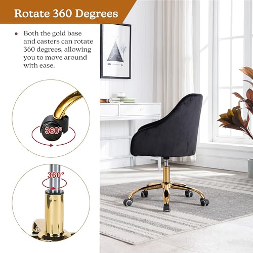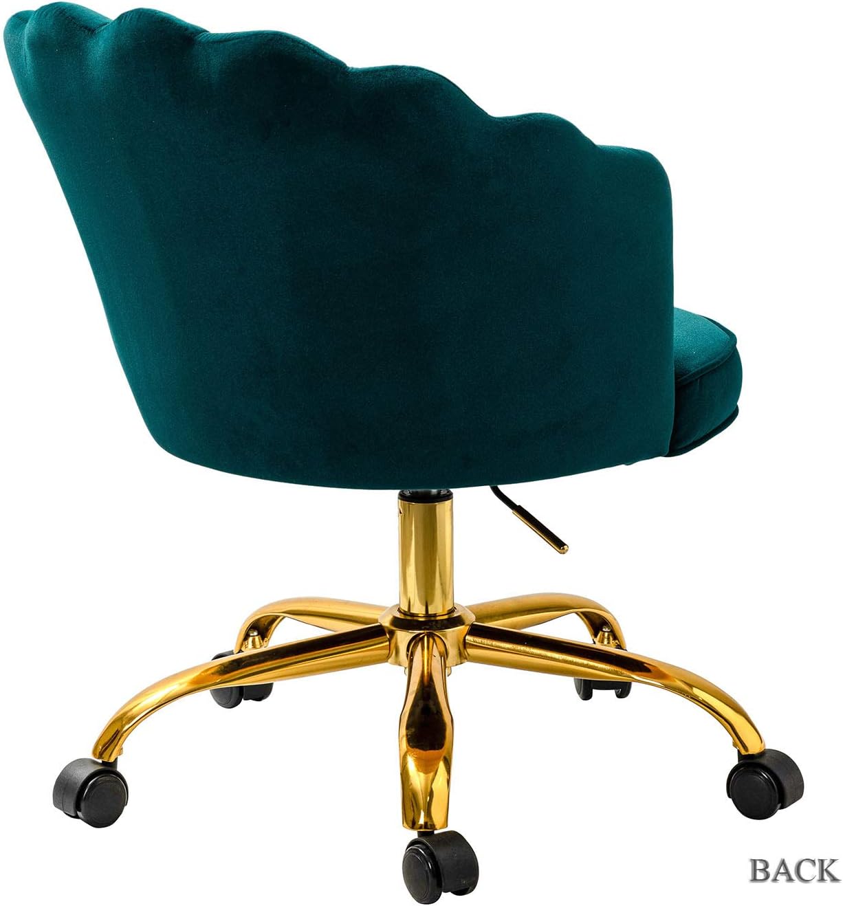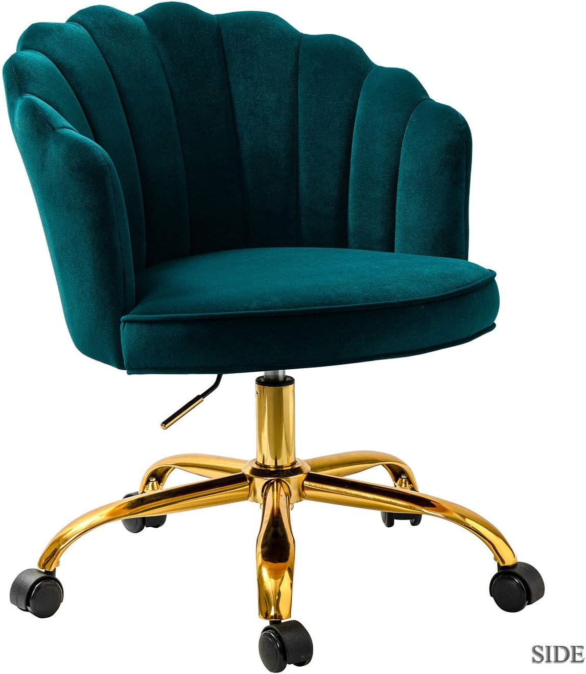 Velvet Office Swivel Chair with Gold Base,Vanity Chair,360° Swivel Armchair Reception Chair with Adjustable Height for Living Room/Bed Room,Modern Upholstered Computer Desk Chair (Teal)