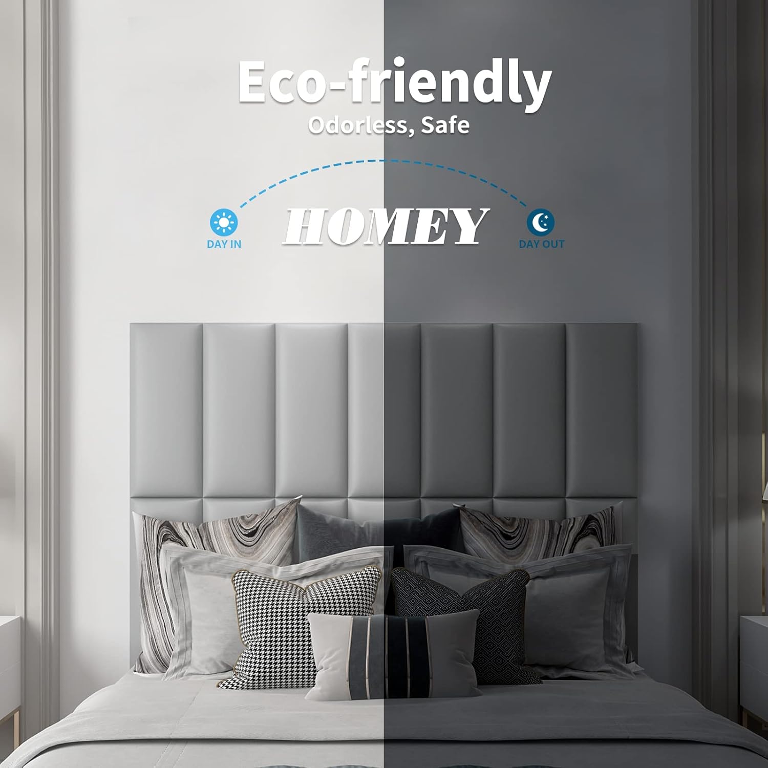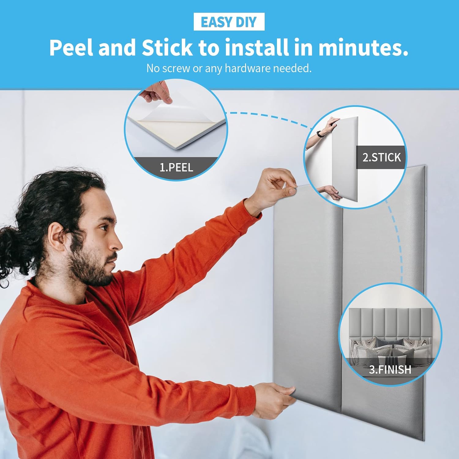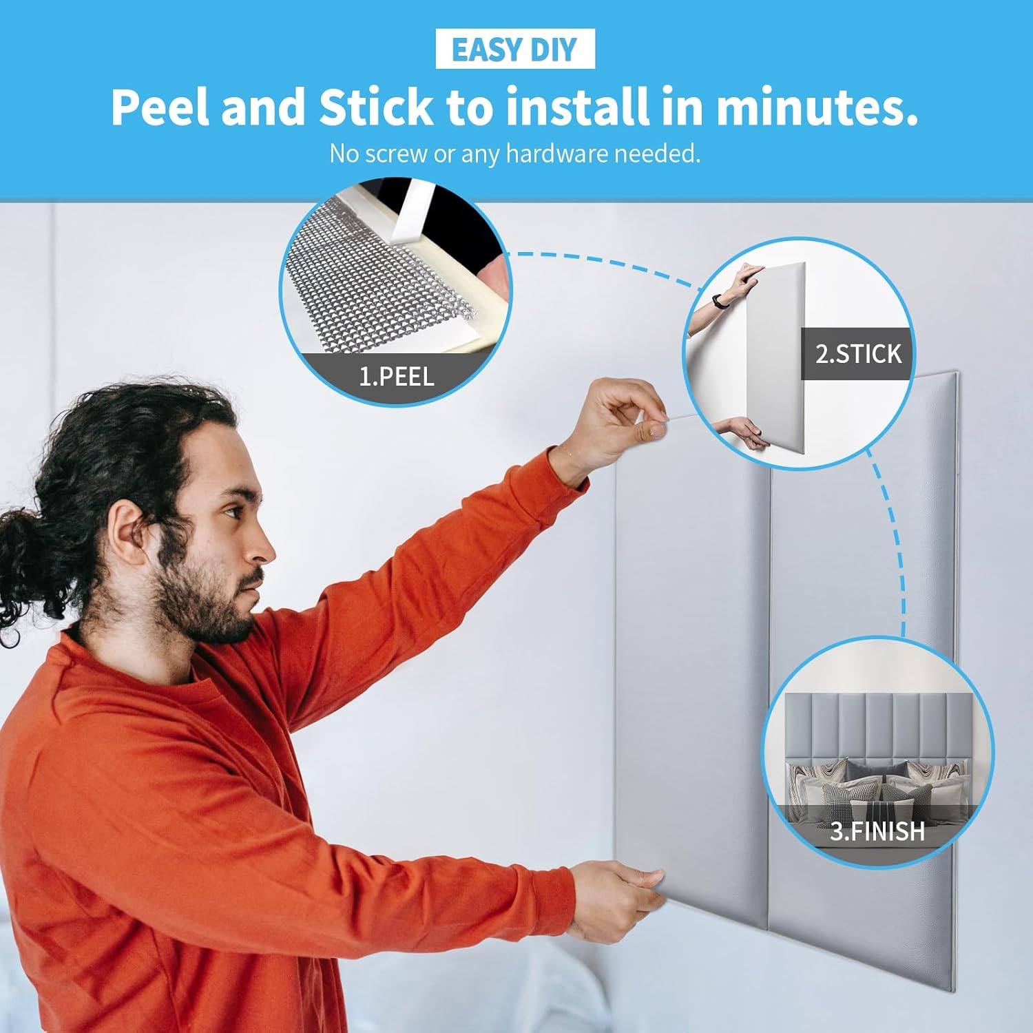Art3d Peel and Stick Headboard for Twin in Grey, Pack of 4 Panels Sized 9.85" x 23.62", 3D Wall Panel, Upholstered Wall Panel