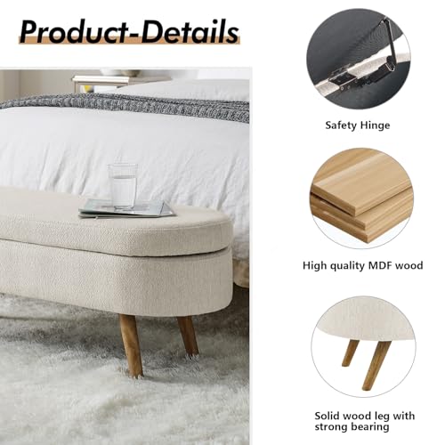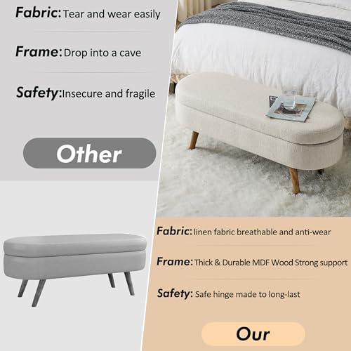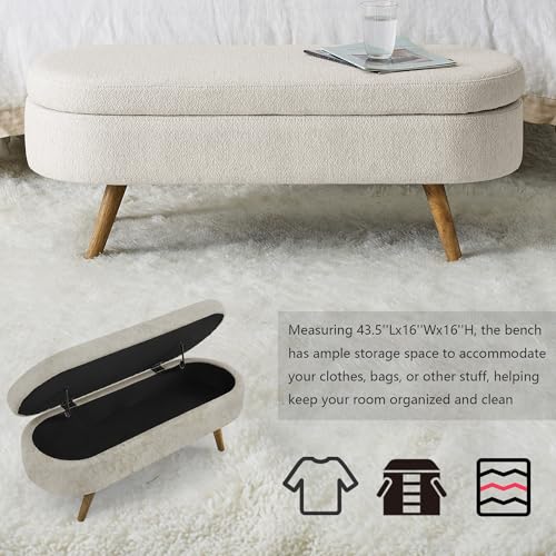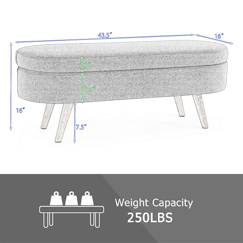 Storage Ottoman Bench, 43.5 Inch Upholstered Fabric Storage Bench for Bedroom End of Bed Aesthetic Oval Storage Ottoman with 250lb Seating and Safety Hinge Flip Top