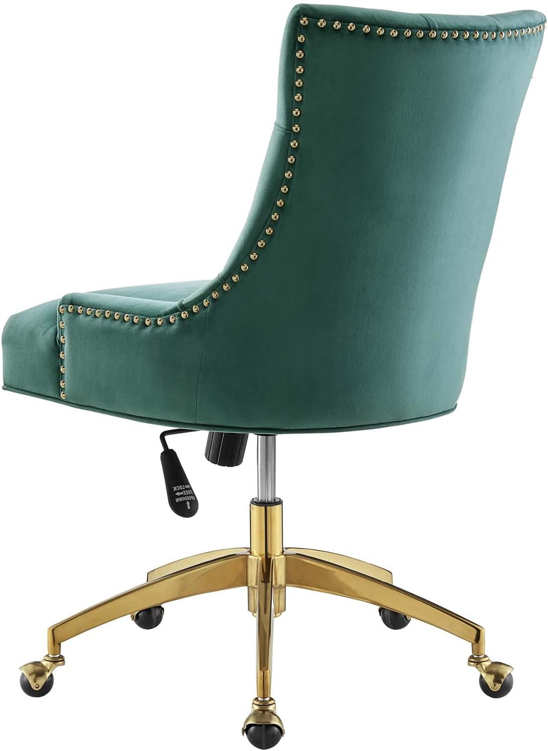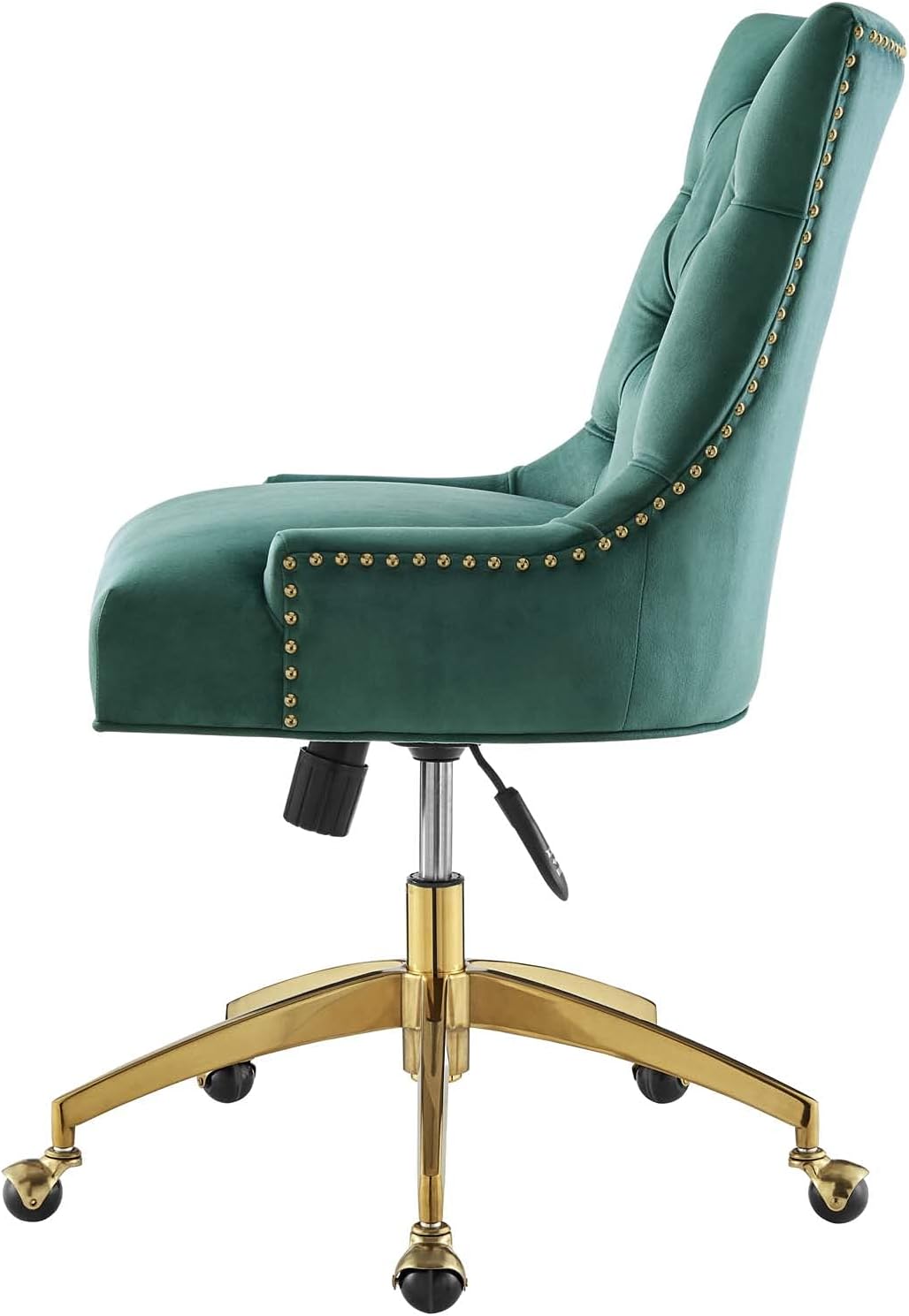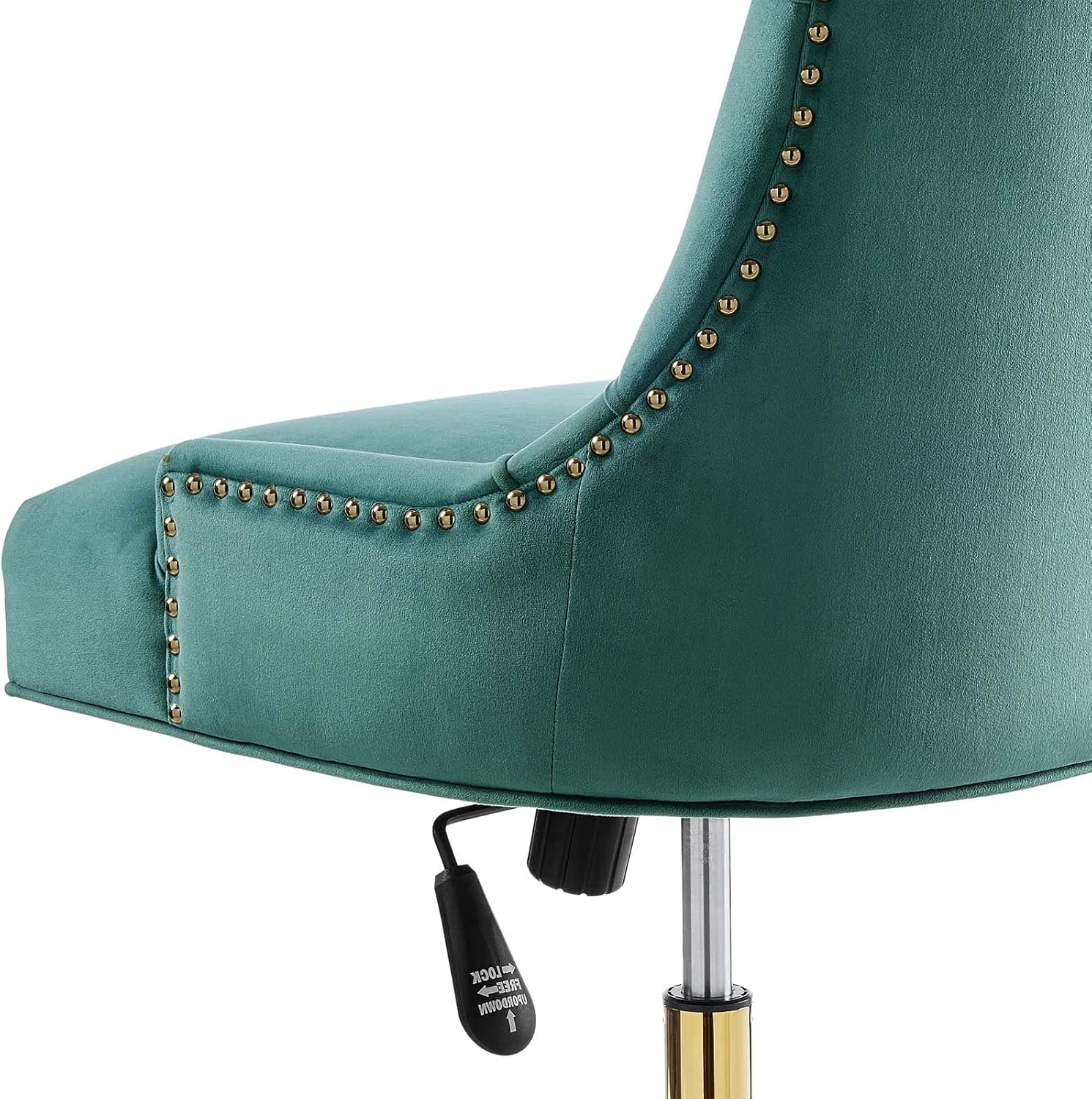 Computer Work Desk Tufted Chair, Velvet, Gold Teal Blue, Modern Contemporary, Home Business Office