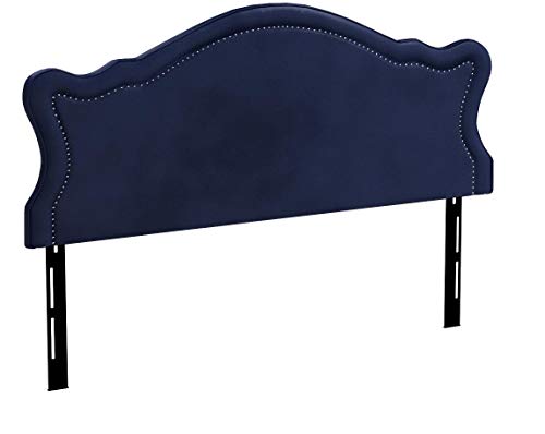 Jennifer Taylor Home Legacy Collection King Size Adjustable Velvet Upholstered Camel Back Headboard with Hand-Applied Nail Head Trim, King, Grey