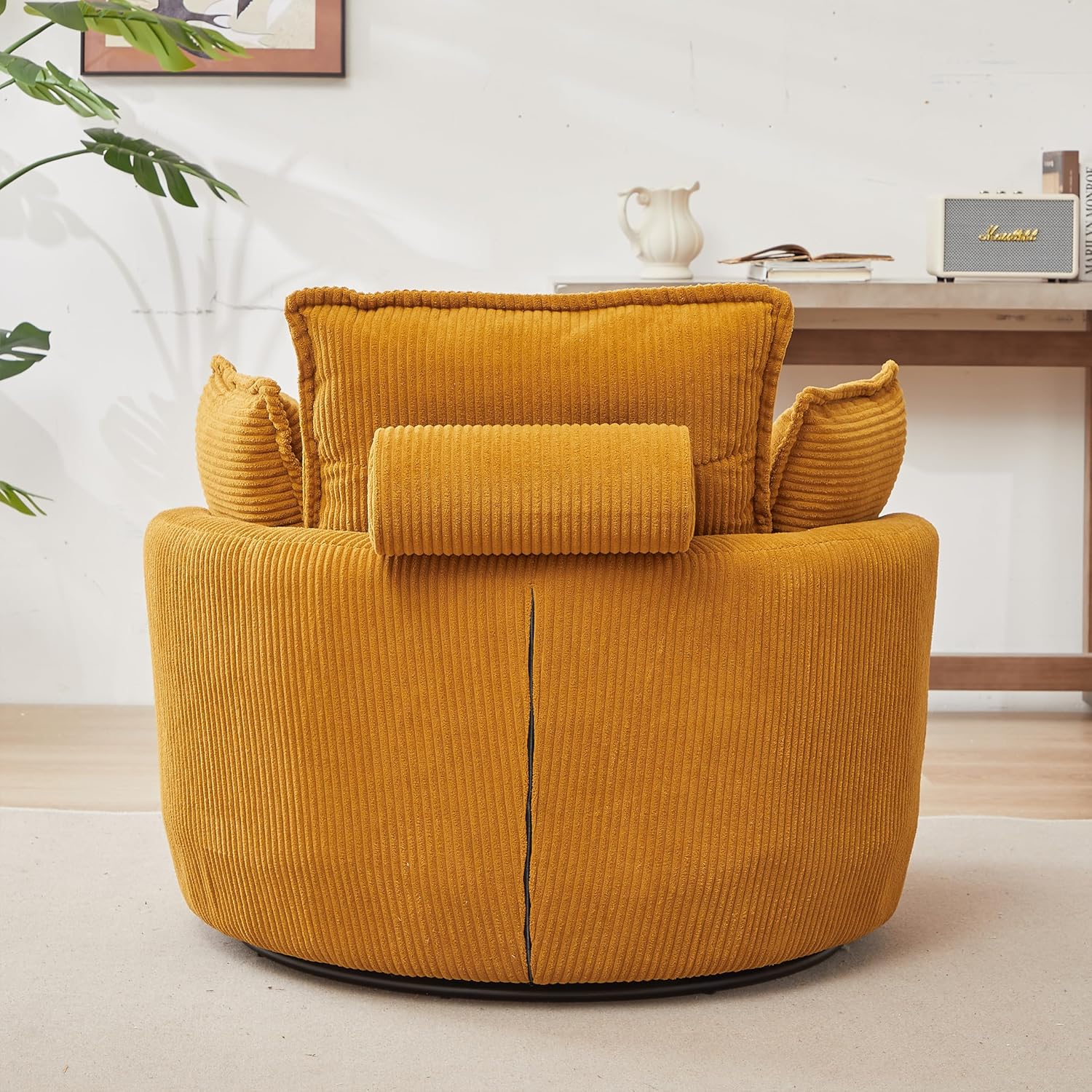 HomSof 38" W Oversized Moon Storage Ottoman for Living Room Modern Accent Round Loveseat Circle Swivel Barrel Bedroom Cuddle Sofa Chair Lounger Armchair, Yellow