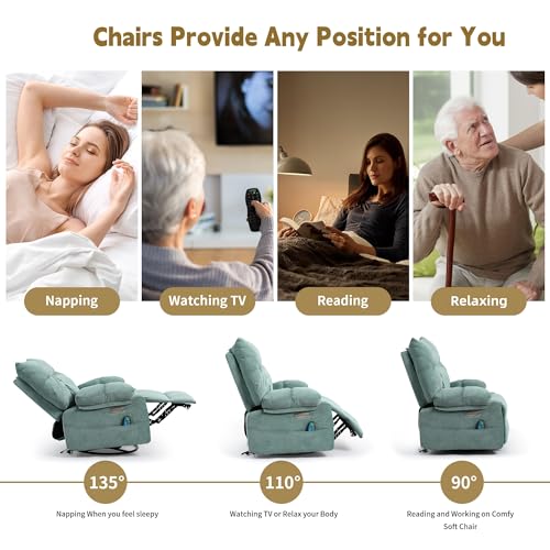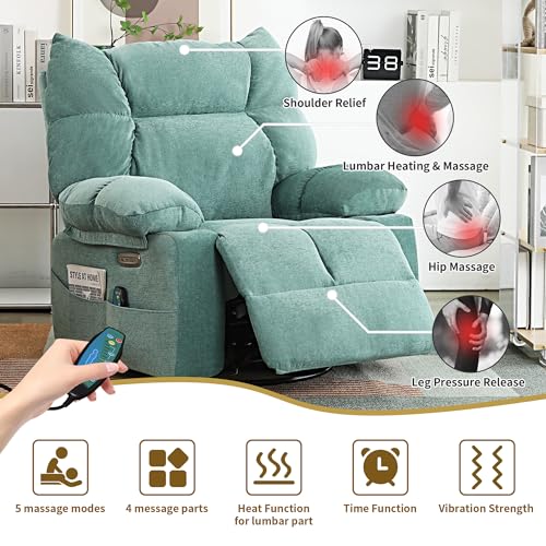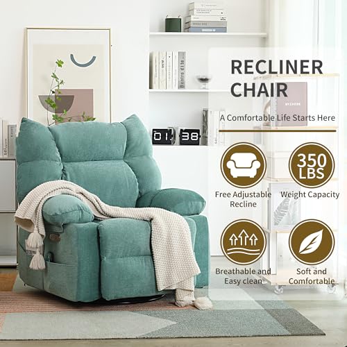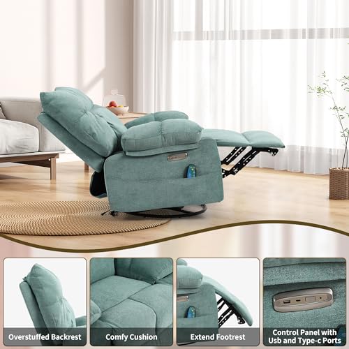 Power Recliner Chair for Adult, Swivel Massage Chair with Heat and Vibration, Oversized Glider Rocking Recliner Lounge Sofa Chair for Living Room, Bedroom, with USB Port (Orange)