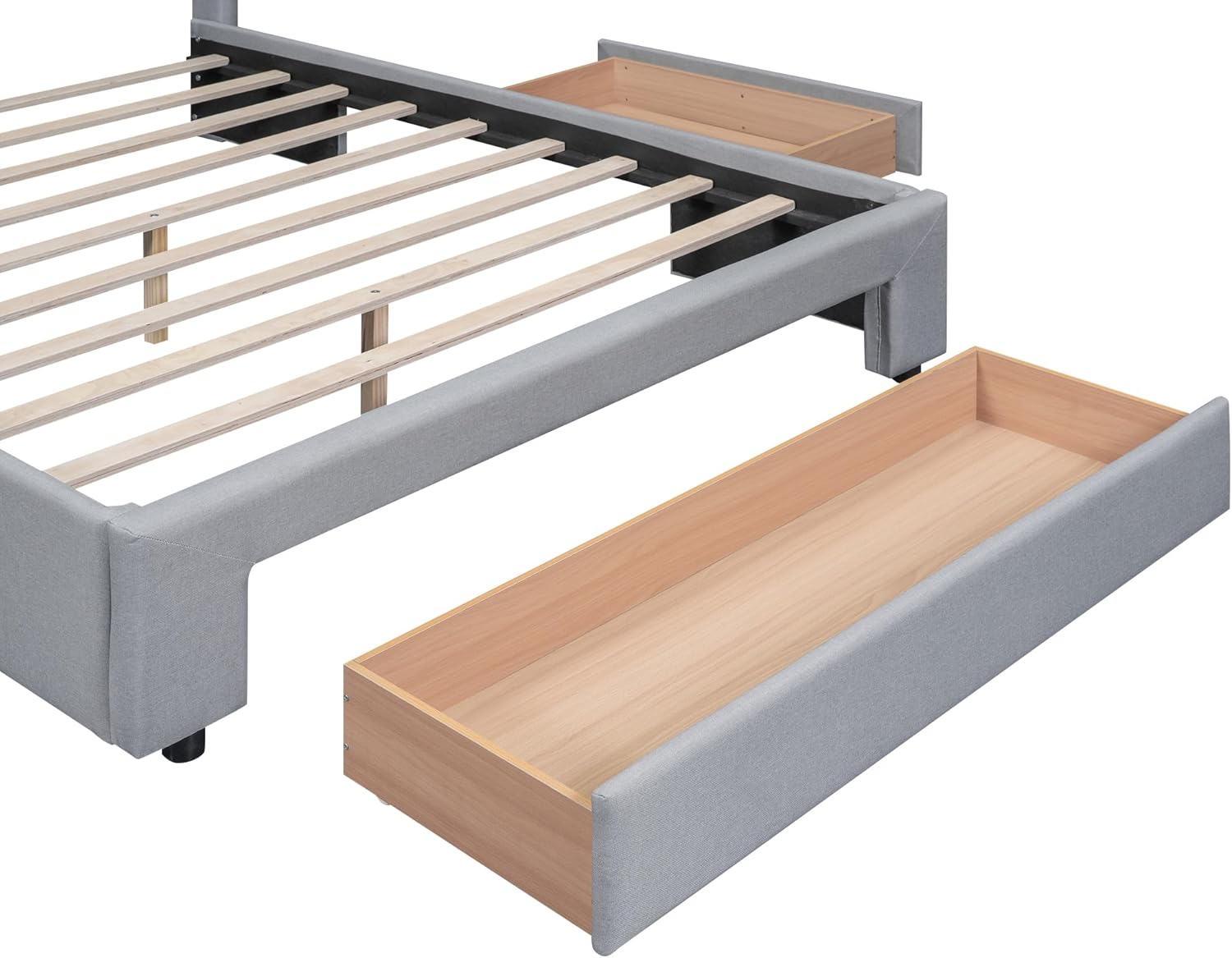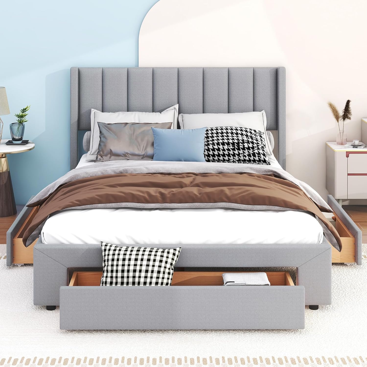 Upholstered Queen Size Platform Bed Frame with 3 Storage Drawers and Headboard, Diamond Stitched Button Tufted, Mattress Foundation with Wooden Slats Support, No Box Spring Needed, Gray