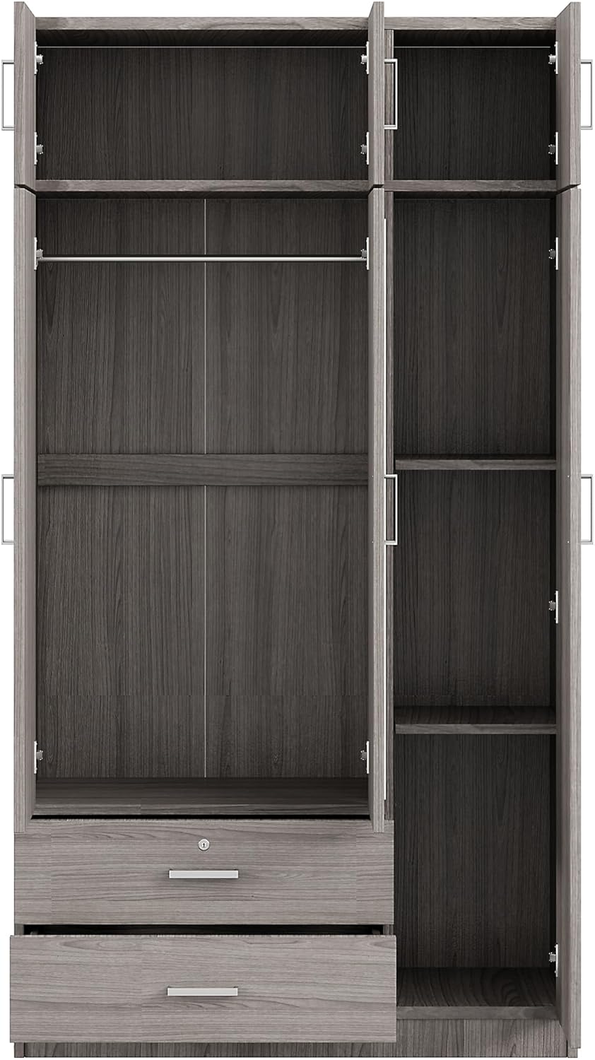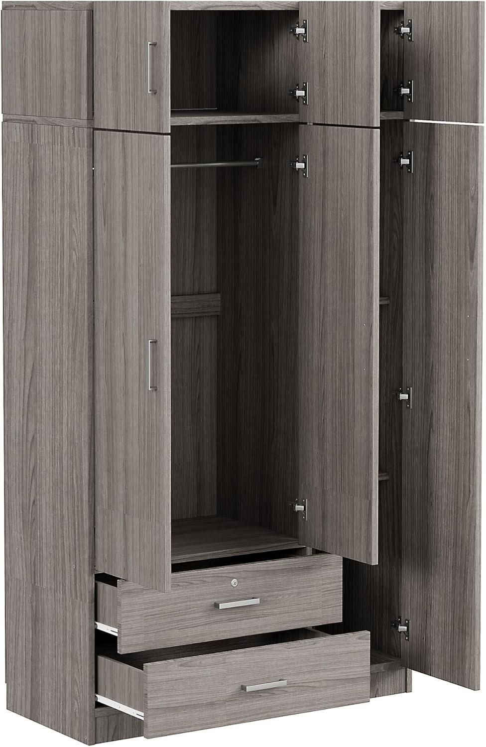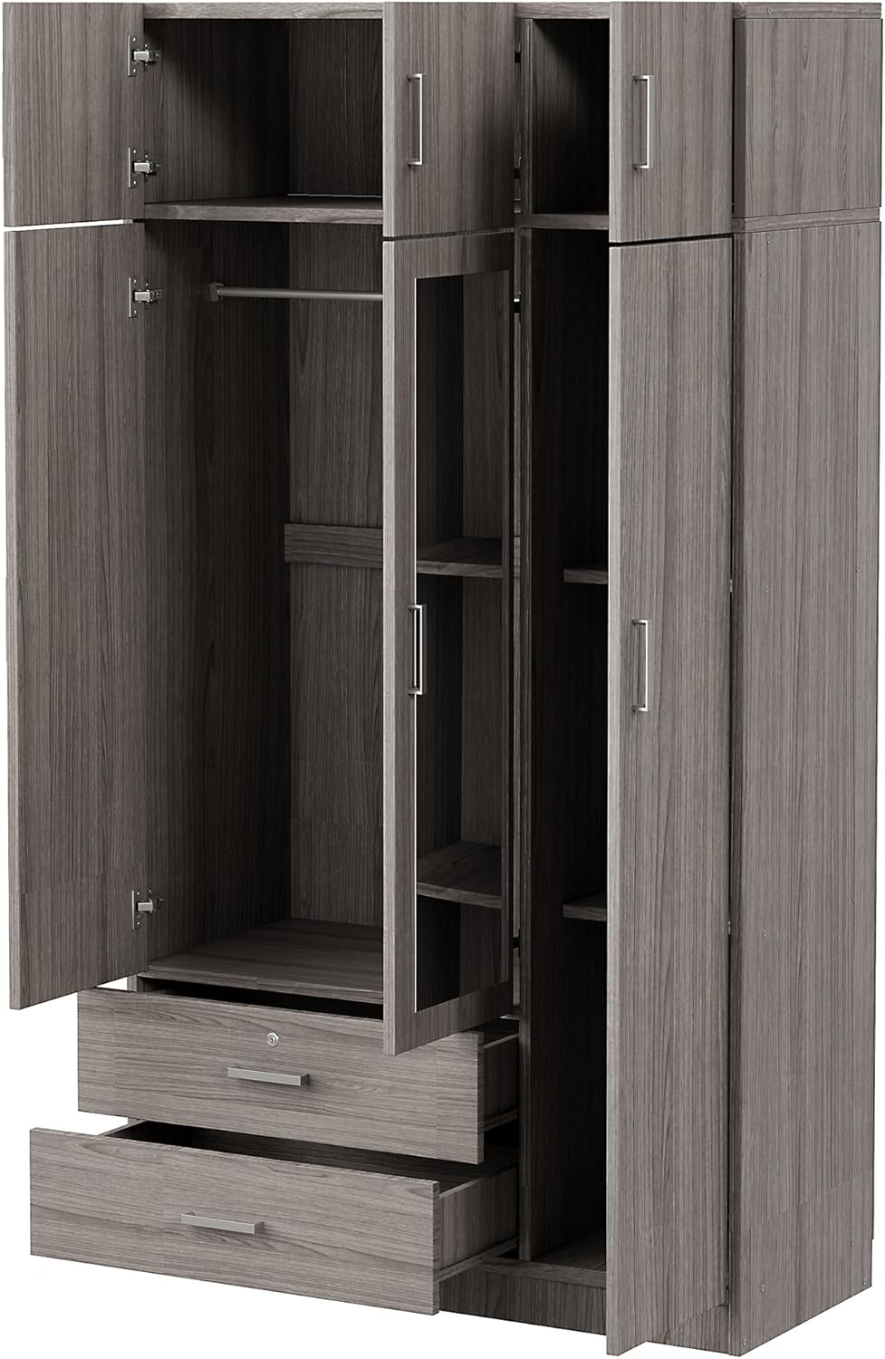 Armoire Mirror, 3 Drawers, Three Door and Top Cabinet, Wooden Bedroom Wardrobe Closet with Shelves Rod for Hanging Clothes,41.3" L x 19.5" W x 81.1" H, Gray
