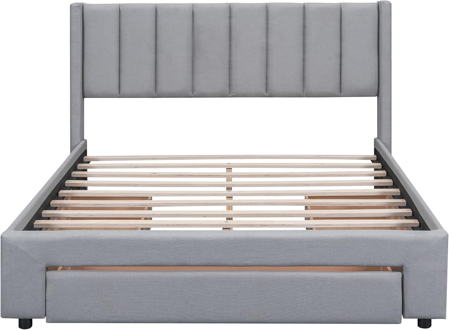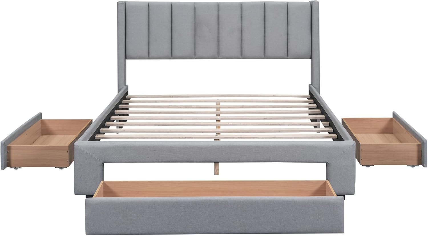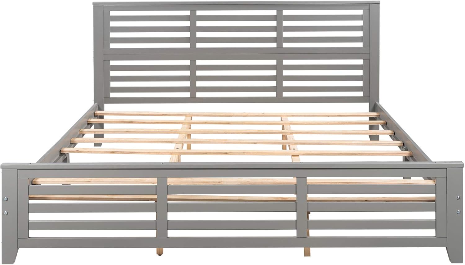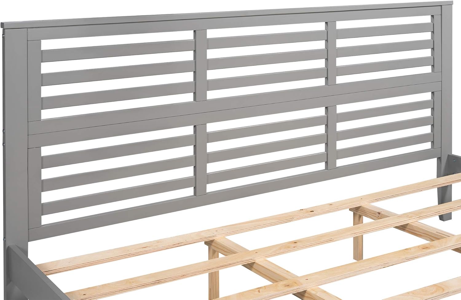 King Size Wood Platform Horizontal Strip Hollow Shape Headboard, with Spacious Underbed Storage,No Box Spring Needed, Easy Assembly Bed Frame, Gray