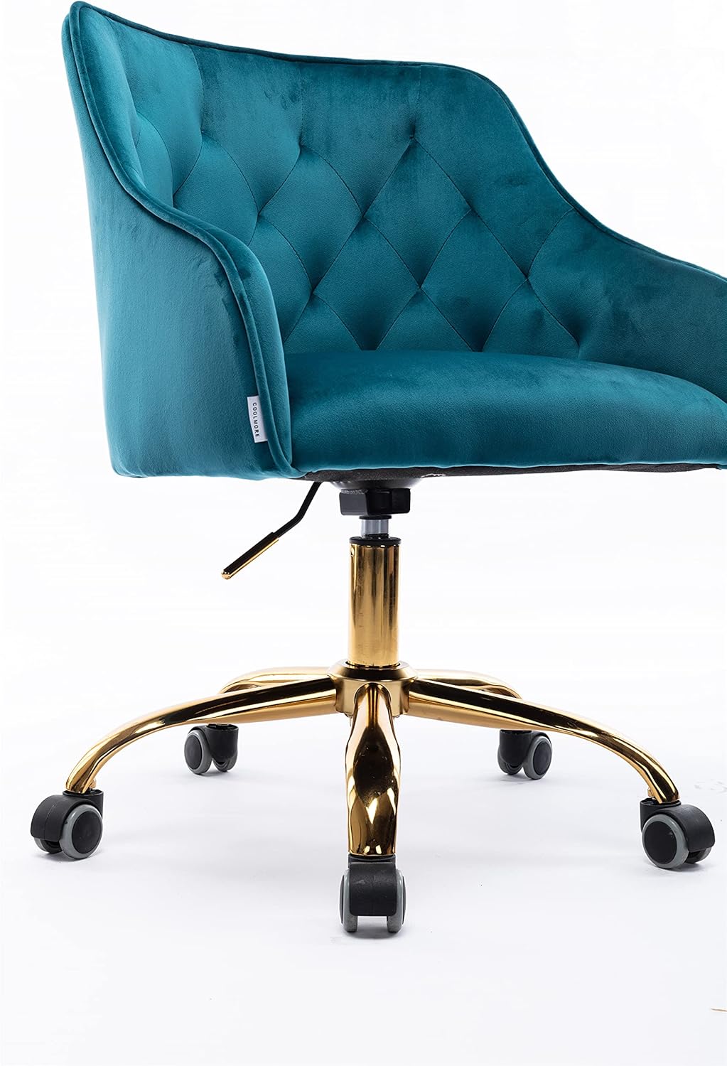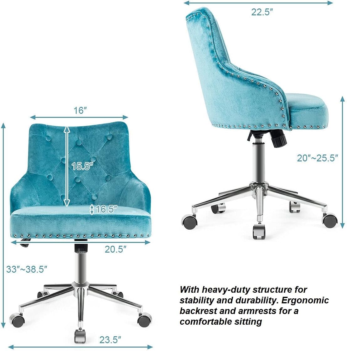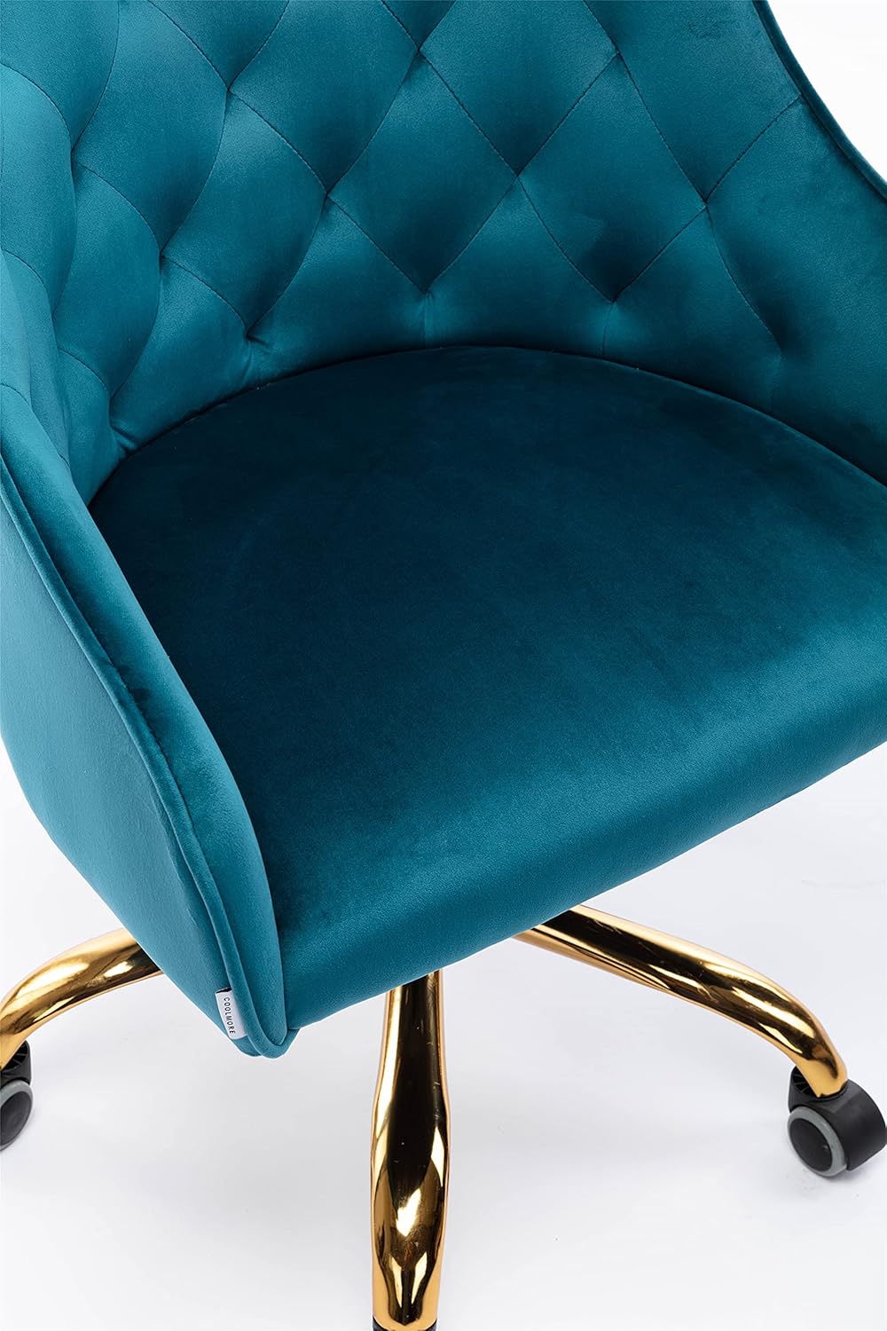 Modern Velvet Office Chair, 360 Degree Swivel Desk Chair with Adjustable Height, Upholstered Task Armchair, Tufted Ergonomic Computer Chair for Home and Office, Teal