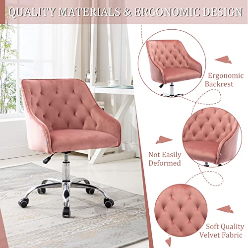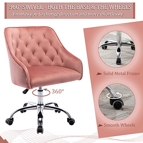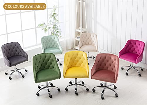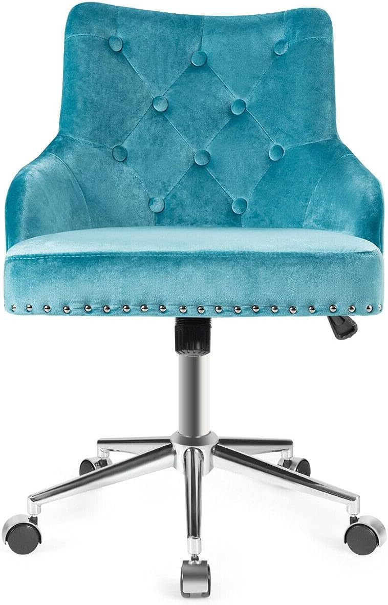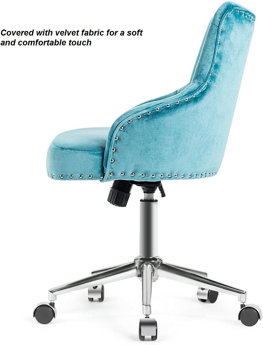 Modern Velvet Office Chair, 360 Degree Swivel Desk Chair with Adjustable Height, Upholstered Task Armchair, Tufted Ergonomic Computer Chair for Home and Office, Teal