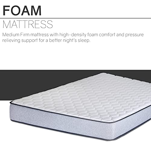 Zayton, 14-Inch Quickbase Metal Platform Bed Frame Foundation with 5" Medium Firm Tight Top High Density Foam Mattress, 75 x 30, Gray