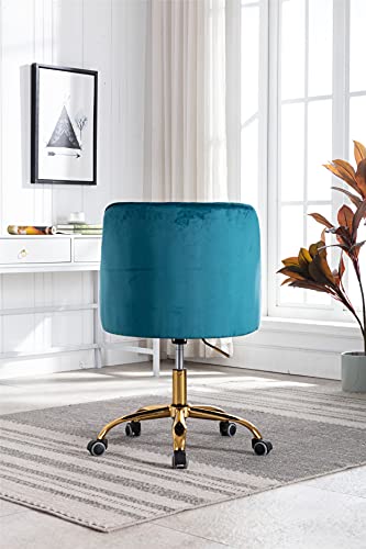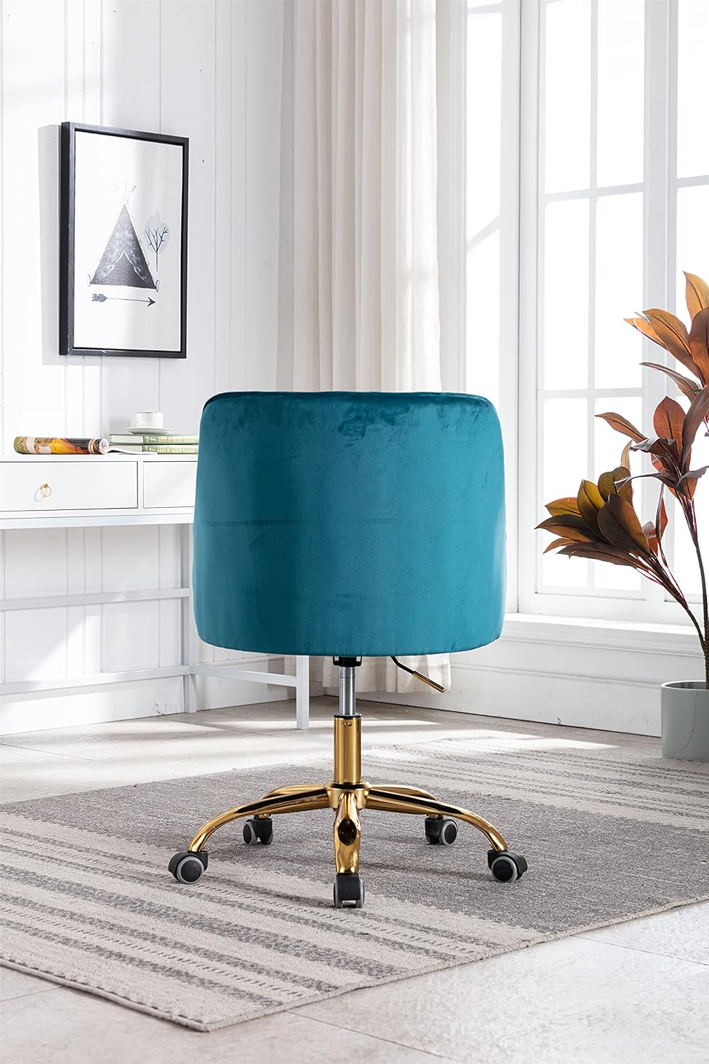 Warmiehomy Velvet Desk Chair Vanity Chair for Makeup with Gold Base and Shell Back Modern Home Office Chair Adjustable Rolling Swivel Computer Task Chair for Bedroom Vanity Room, Teal