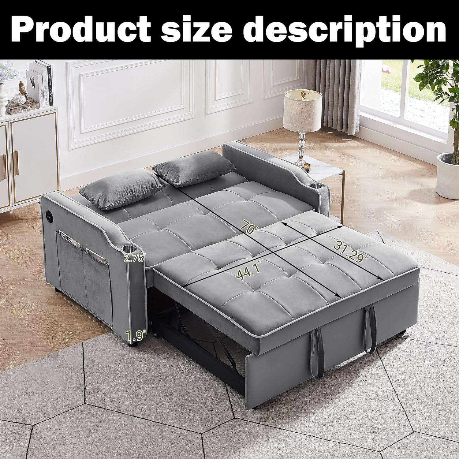 Folding Sofa Bed, 3 in 1 Convertible Sofa Chair Bed, Bedroom Movie Bed Adjustable Backrest Chair, Recliner with USB Port, Cup Holder, Side Pocket for Living Room Bedroom Office(Gray)