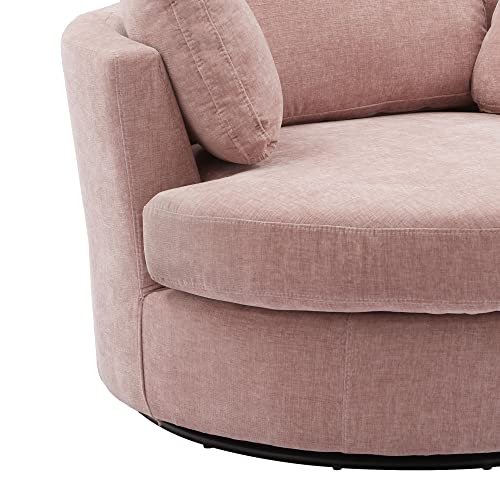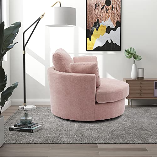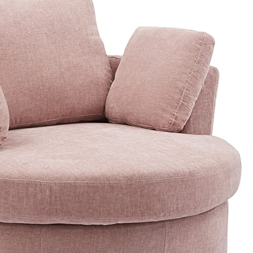 Swivel Accent Barrel Chair, 42.2" W Half Upholstery Chair,Modern Oversized Arm Chair with 3 Pillows, Cozy Club Chair for Bedroom Living Room Lounge Hotel (Pink)