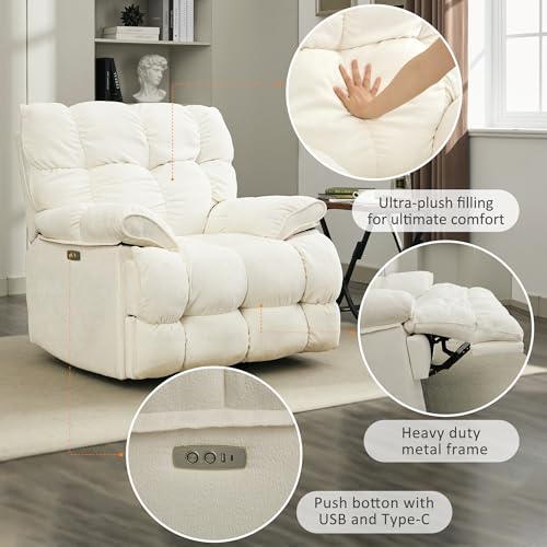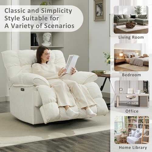 Oversized Extra Wide Power Recliner Chair Overstuffed Electric Power Recliner with USB Port 270 Degree Swivel, Soft Fabric, Big Man Comfy Glider for Living Room, Up to 350 LBS