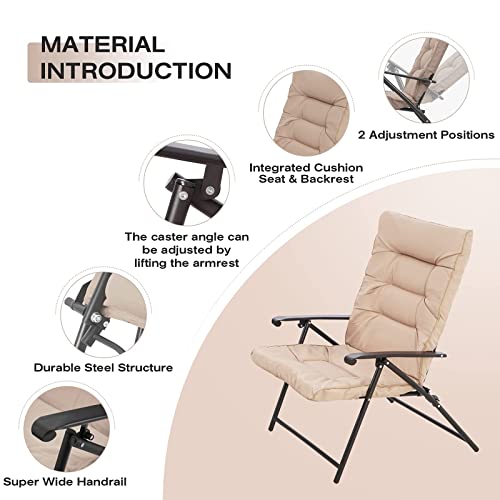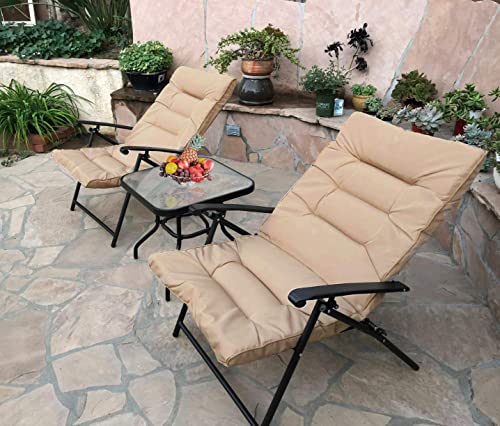 Oakcloud 3-Piece Patio Bistro Set Padded Folding Chair Set Adjustable Reclining Lounge Chairs with Cushion & Tempered Glass Coffee Table, Red