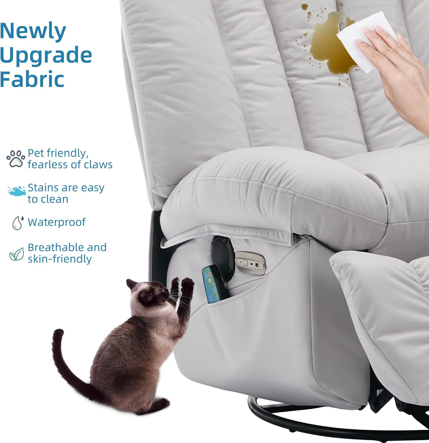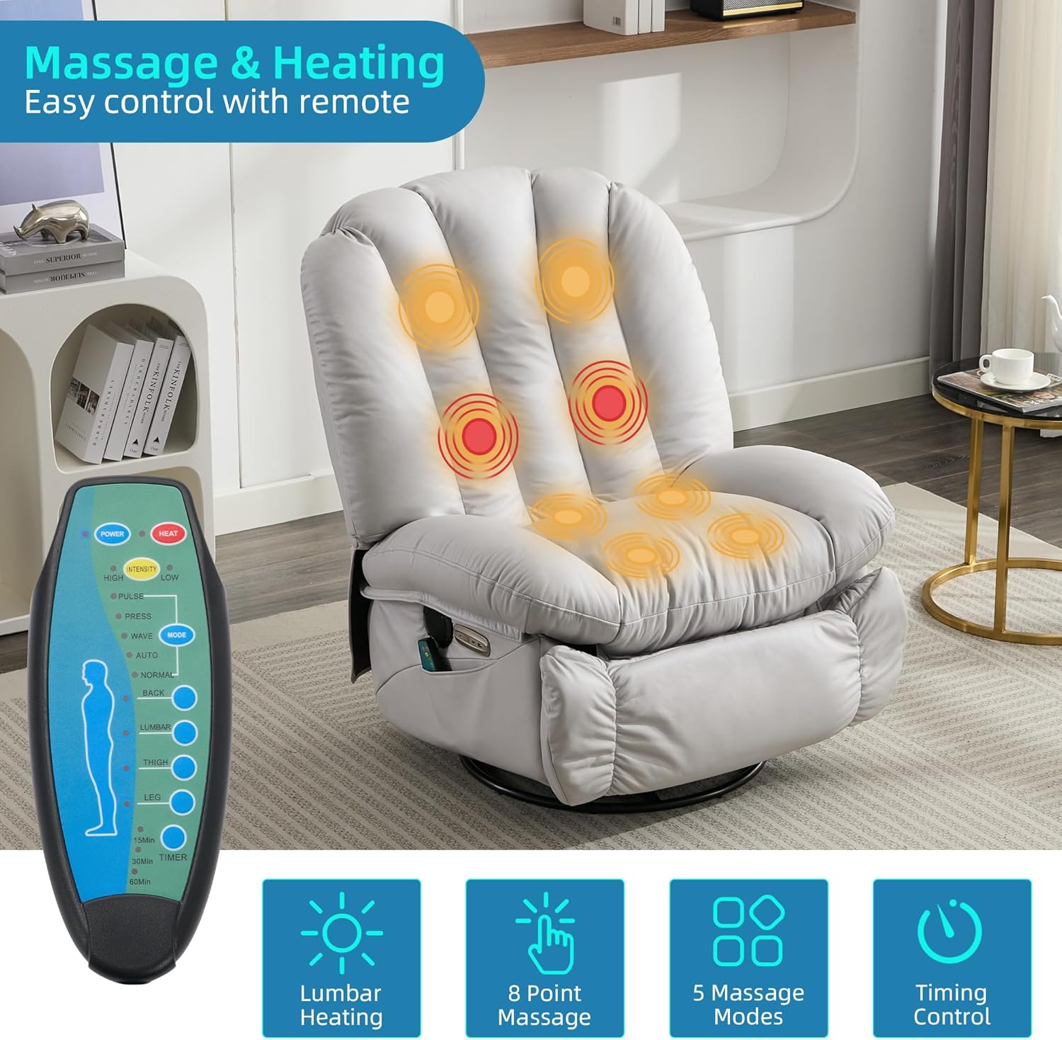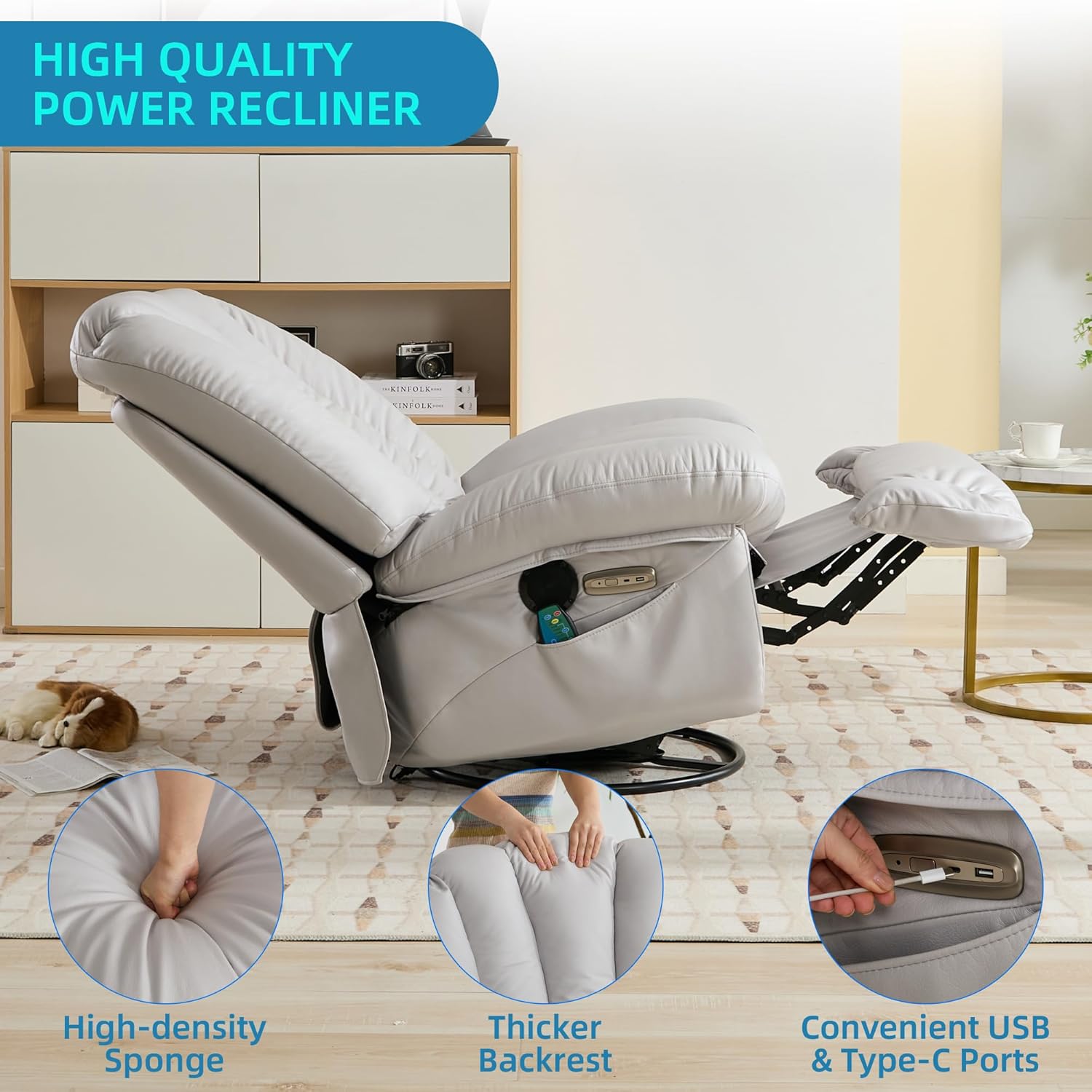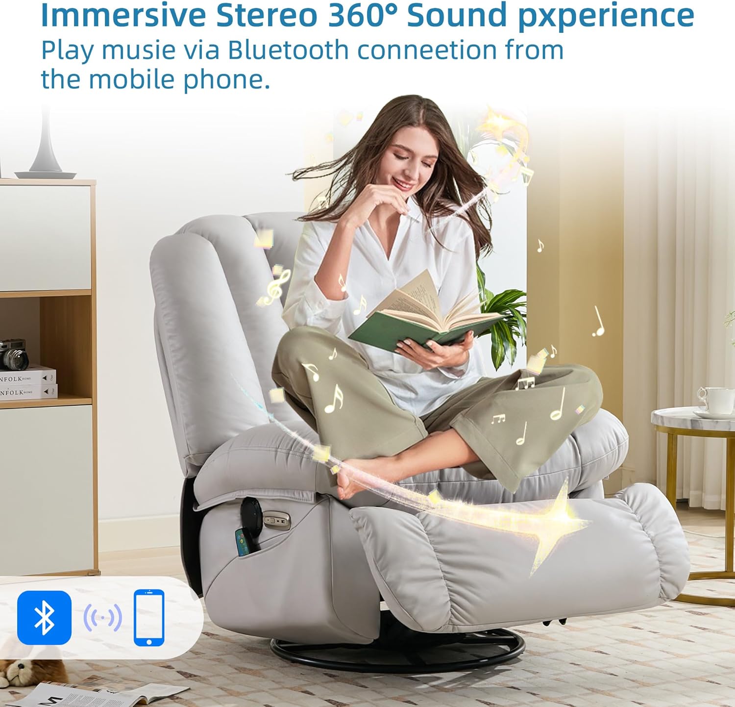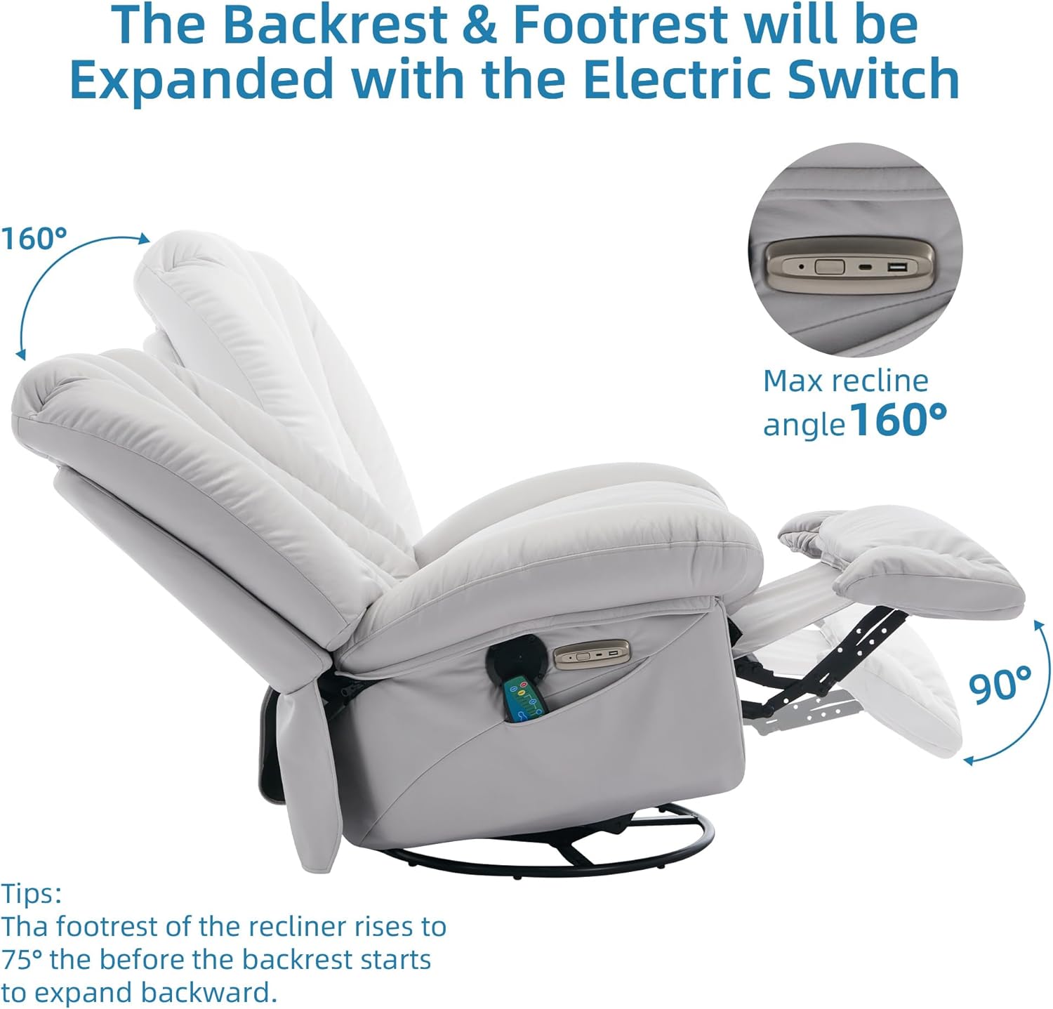 DYHOME Oversized Power Recliner Chair, Swivel Massage Chair Recliner with Heated, Bluetooth Speaker, USB and Type-C Ports,PU Leather Rocking Recliner Chairs for Adults for Living Room, Grey