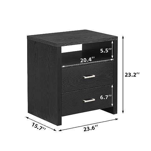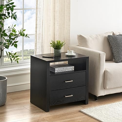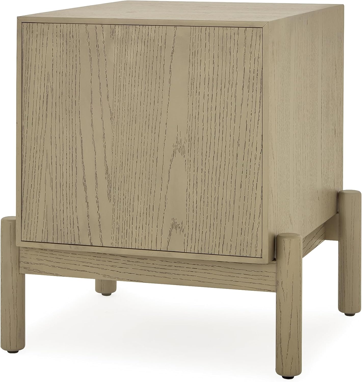 Bme Lyra Solid Wood Side End Table/Nightstand-Easy Assembly-with 2 Drawers Storage for Mid Century Modern Living Room and Bedroom, 16.4" L x 19.7" W x 22.1" H, Oak Light Grey