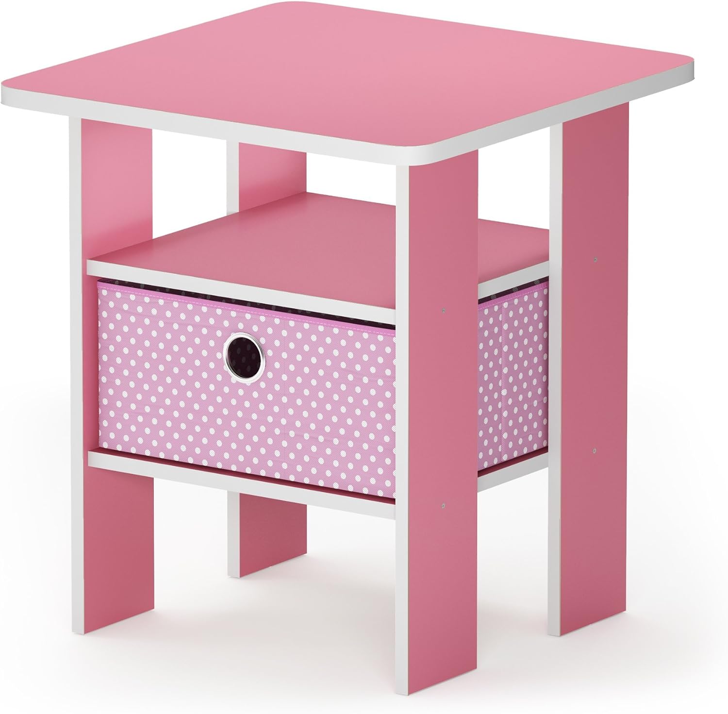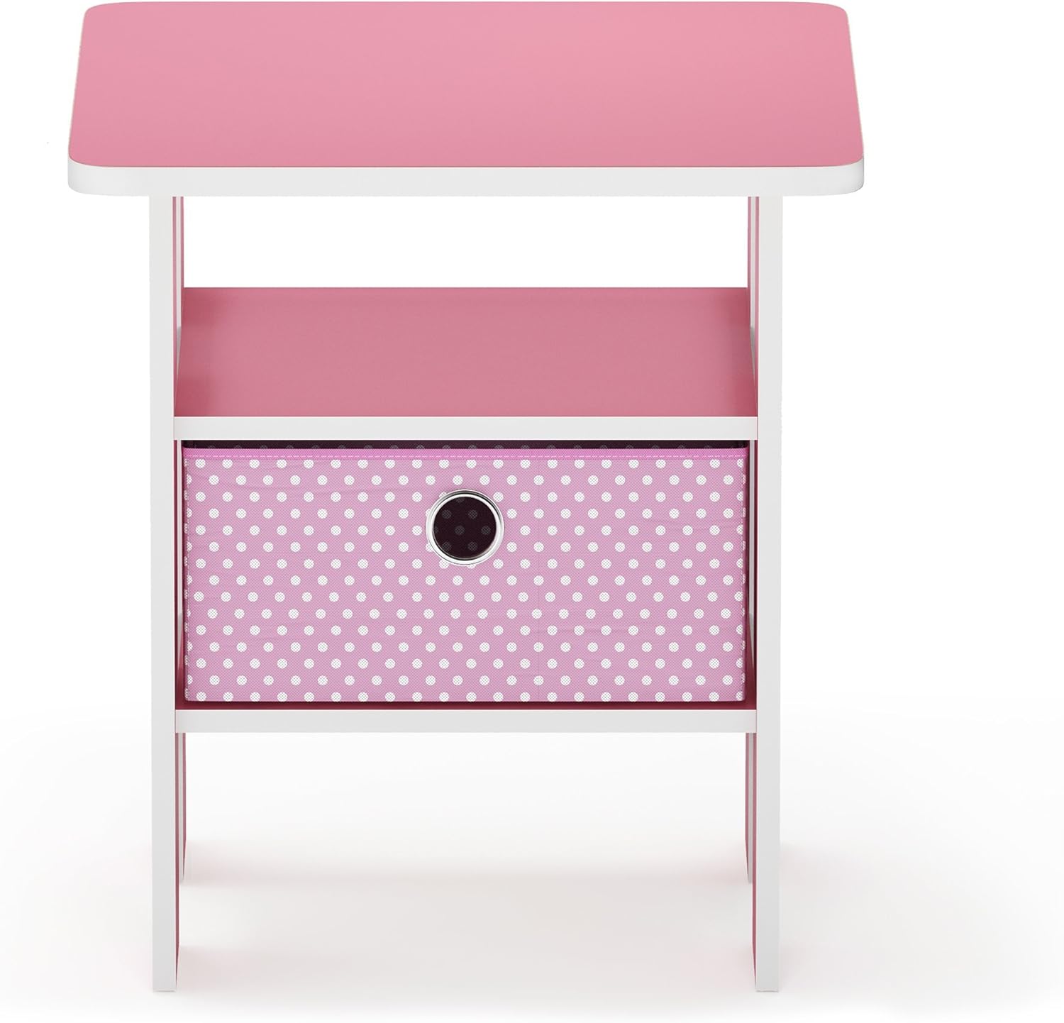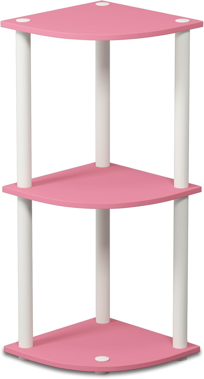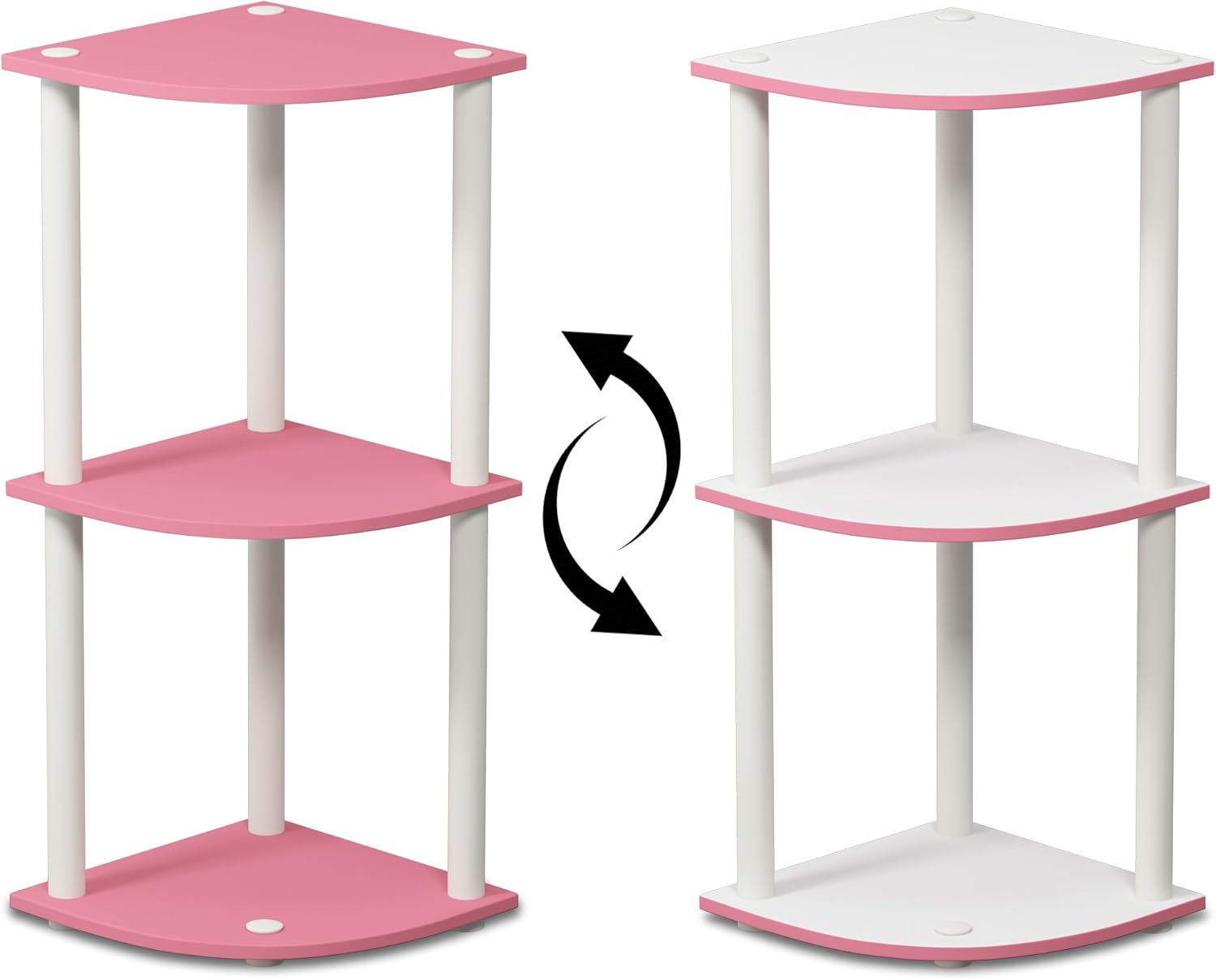 Furinno Andrey End Table with Bin Drawer, Pink/Light Pink 3-Tier Round Tube Corner Display Rack, Pink/White