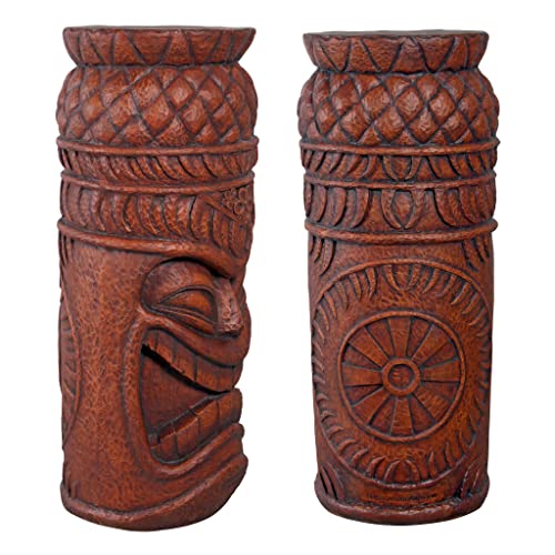 Design Toscano DB383038 Grand Tiki Face Kanaloa Teeth Indoor/Outdoor Side Table Statue for Patio, Bar or Den, 15 inches wide, 20 inches tall, Handcast Polyresin, Woodtone Finish