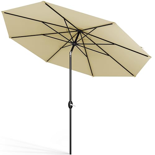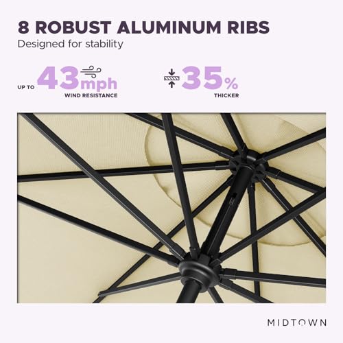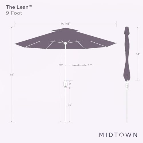 Midtown Umbrellas Sunbrella Umbrella 9 Feet Outdoor Umbrella With Cast Slate Acrylic Fabric - Auto-Tilt Aluminum Frame Patio Umbrella For Backyard, Deck, Garden, Pool - Black Pole