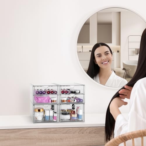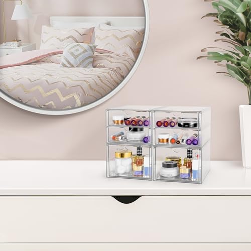 Sorbus Makeup Organizer With 14 Drawers, Acrylic Drawer Organizer for Makeup, Office Organization and Storage, Art Supplies, Jewelry, Stationary - 3 Pcs Clear Stackable Storage Bins Organizer Drawers
