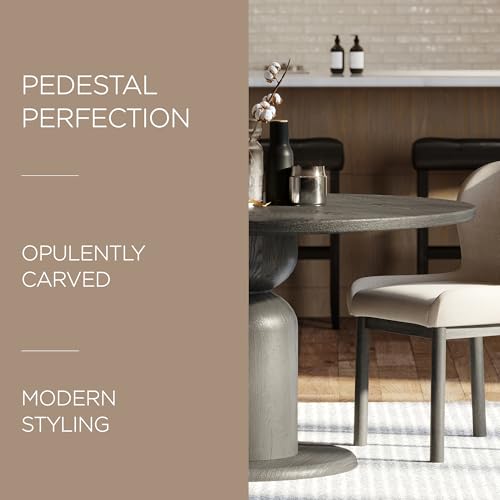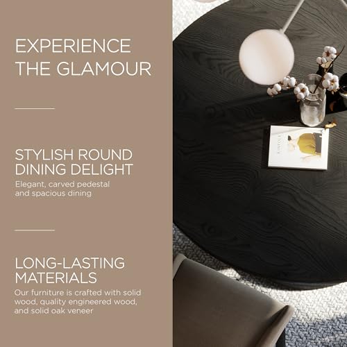 Maven Lane Mila Contemporary Large Round Circle Wooden Pedestal Dining Table for Modern Kitchen, Bistro, or Card Table in Refined Natural Finish