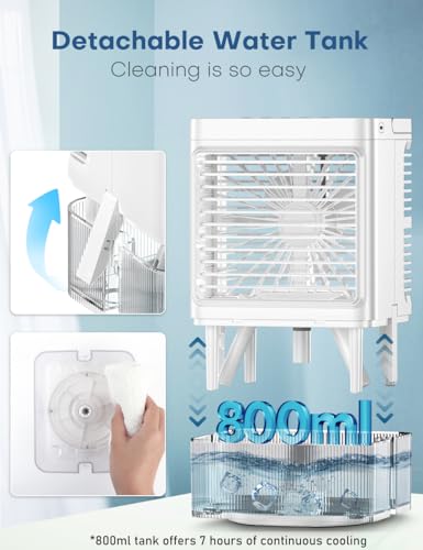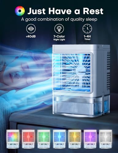 Personal Air Conditioner w/Remote & LED Screen, 90° Oscillation, 4H Timer, 7 LED Night Light, 2 Cool Mist, 3 Speeds Evaporative Air Cooler, Portable Air Conditioners for Bedroom Desk Camping
