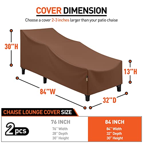 Chaise Lounge Cover, Waterproof Outdoor Lounge Chair Covers, 2 Pack Patio Chaise Covers, All Weather Resistant Patio Furniture Covers, 76"L x 30"W x 25"H, Beige and Brown