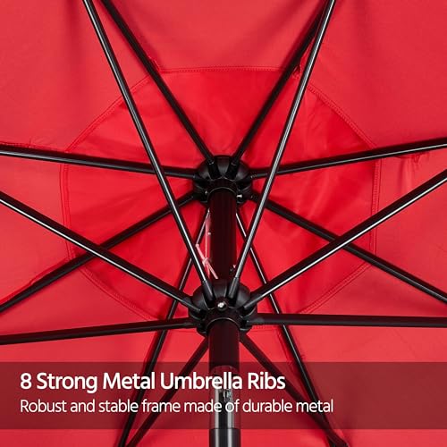 Yaheetech 7.5FT Patio Umbrella Outdoor Market Table Umbrella with 6 Sturdy Ribs, Push Button Tilt & Crank for Garden/Lawn/Deck/Backyard/Pool/Beach (Red)
