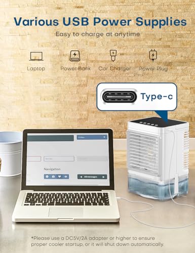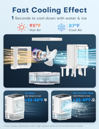 Portable Air Conditioners, Desktop Mini Air Conditioner For Bedroom, 3-In-1 Air Cooler With Dual Fog Setting And Powerful Wind Speed, Affordable Cooling Options For Living Room, Desktop (White)