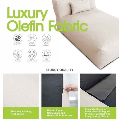 Patio Furniture Set Bean Bag Lounge Chair Sectional Conversation Patio Set Daybed Furniture Outdoor Sofa Couch High Density Foam Filling Modern Comfy Patio Couch (light gray)