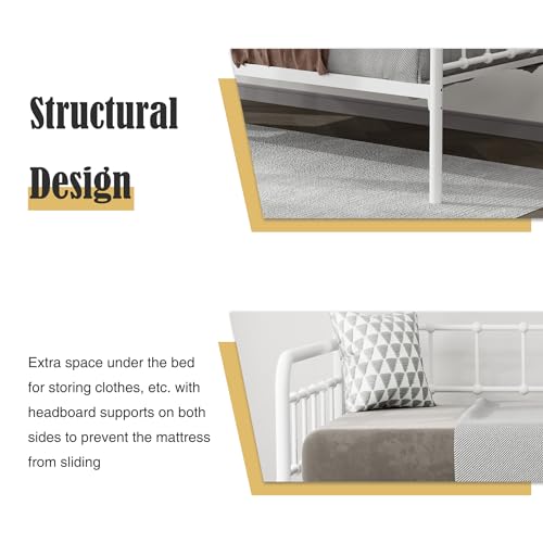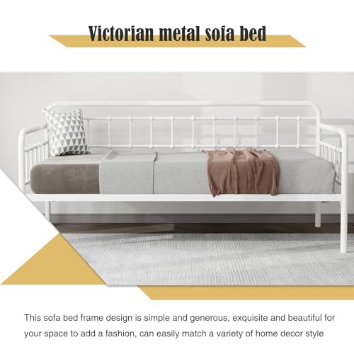 Victorian Twin Metal Daybed Frame Steel Slat Support Platform Mattress Foundation Sofa Bed for Living Room Guest Room Black