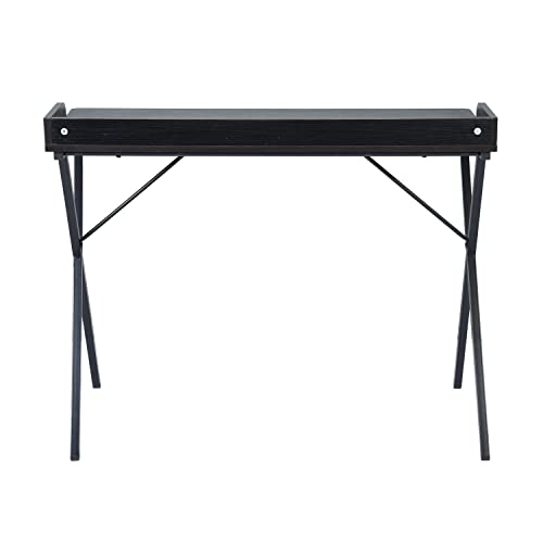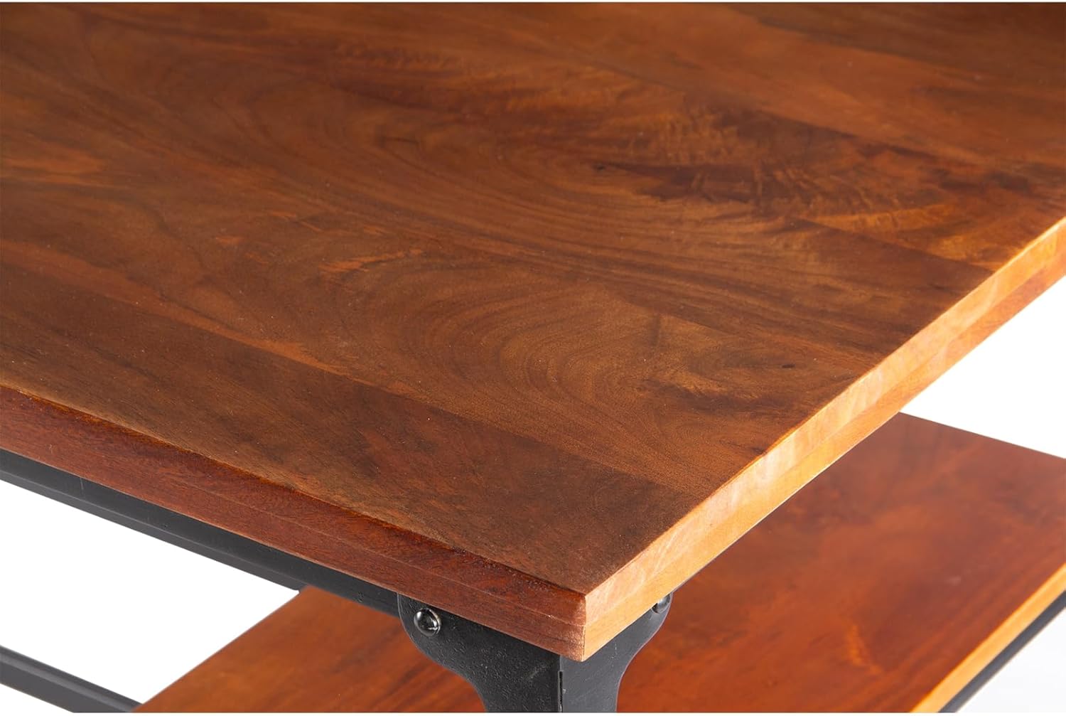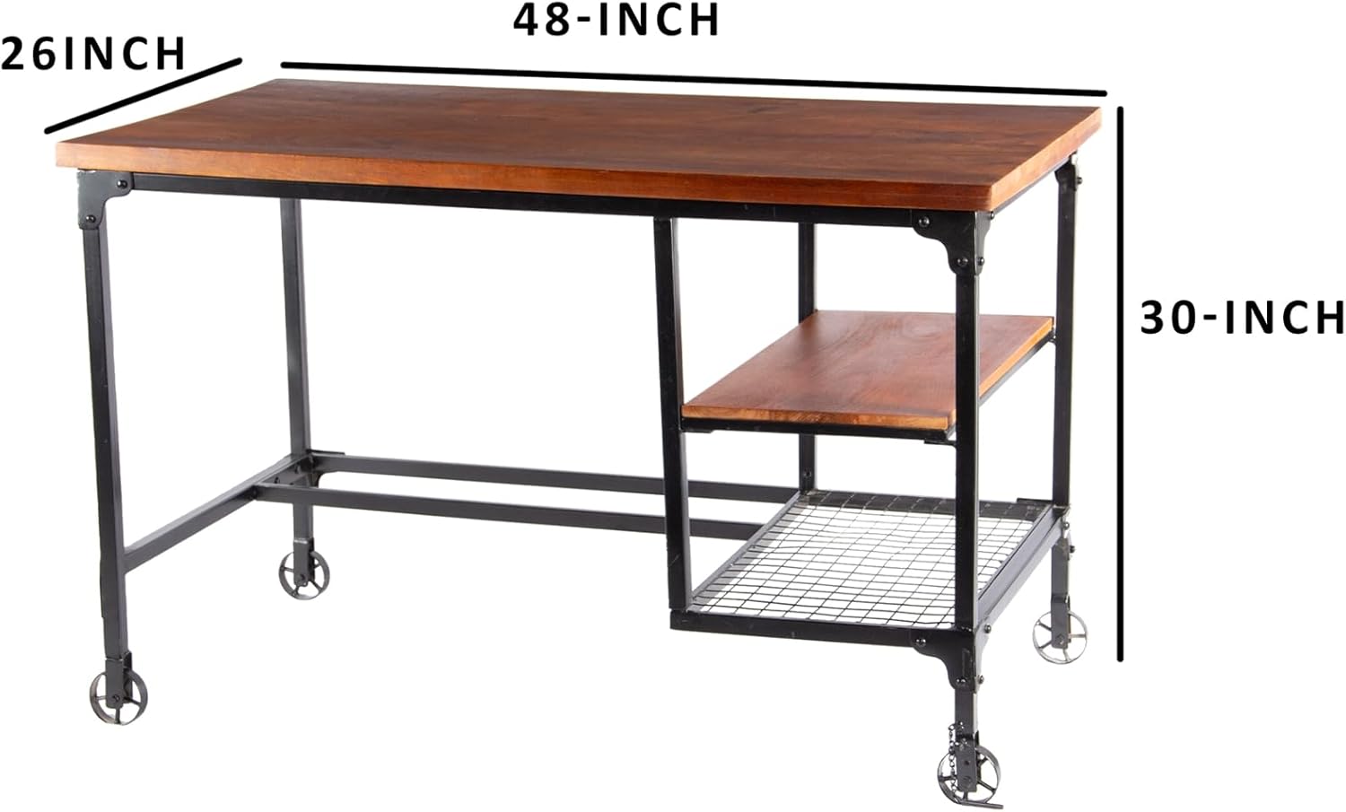 Industrial Style Wood and Metal Desk with 2 Bottom Shelves, Brown and Black, 48" L x 26" W x 30" H
