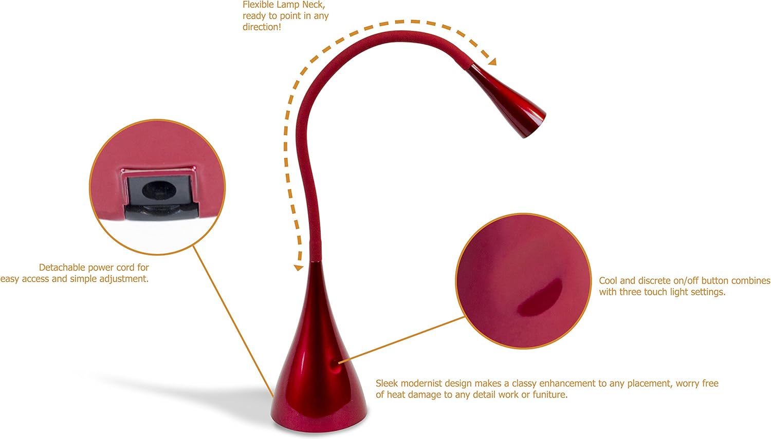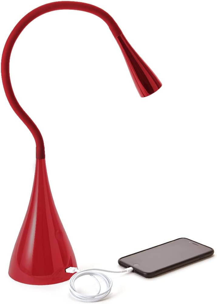 Newhouse Lighting NHGS RD Gooseneck LED Desk Lamp, USB Charging, Touch Dimming, 4.5" x 26" x 4.5", Red