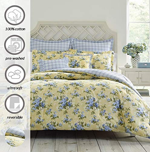 Laura Ashley Cassidy Yellow Comforter Set, King, Includes Bonus Euro Shams & Throw Pillows Lorelei Dark Blue King Sheets, Soft Sateen Cotton Bedding Set, 4 Pieces