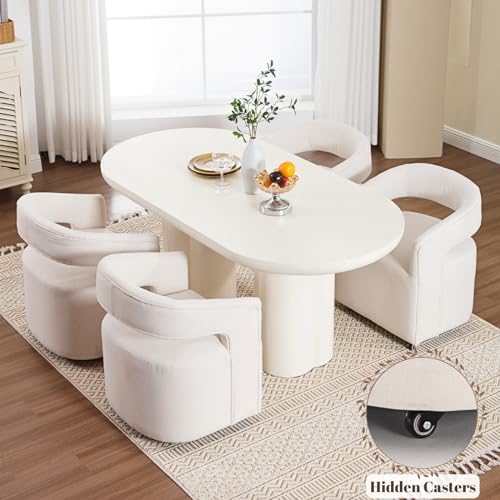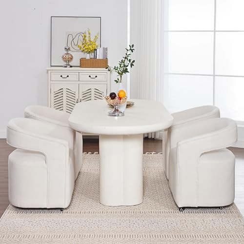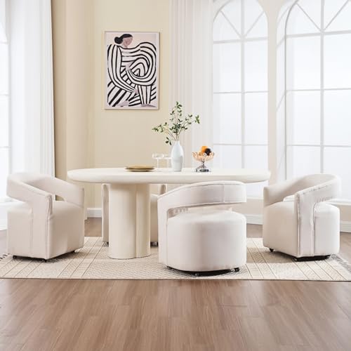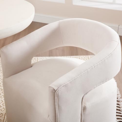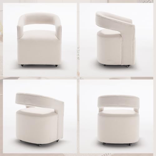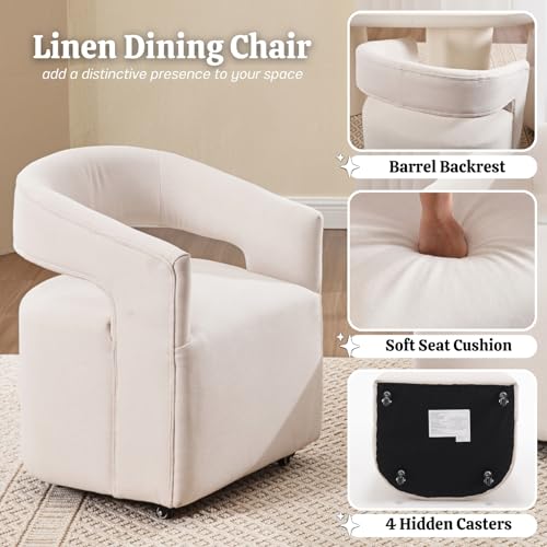 HEAH-YO Barrel Dining Chairs with Casters Set of 2, Linen Upholstered Accent Armchair with Wooden Frame, Single Sofa Chair for Bedroom Living Room Dining Room, Beige