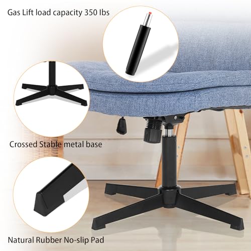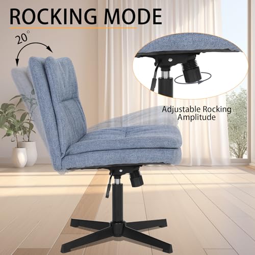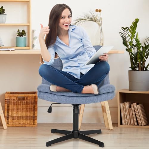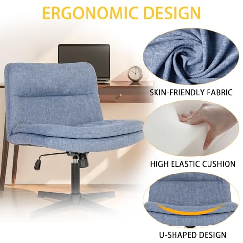 armless criss cross legged chair no Wheels comfy cute modern wide chairs for office computer desk vanity makeup, breathable fabric, Blue