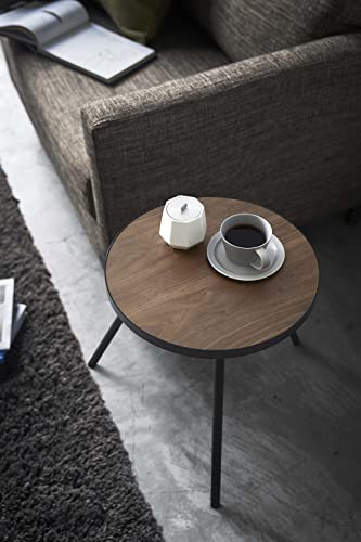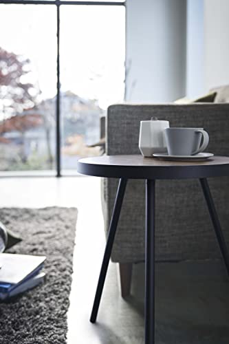 Yamazaki Home Side Table, Bedside or Coffee End Table For Living Room Or Bedroom, Modern Small Circle Pedestal Night Table, Steel + Wood, Minimal Assembly Req., Black (Black 19-3911tcx)