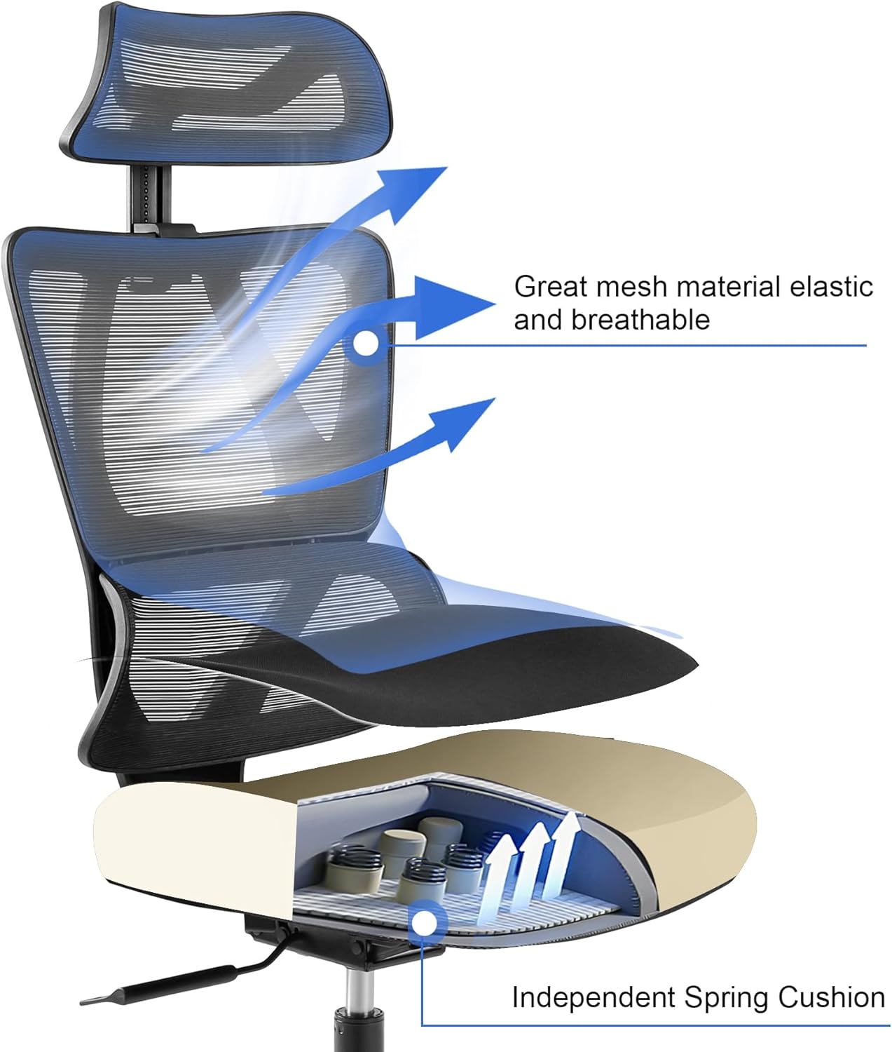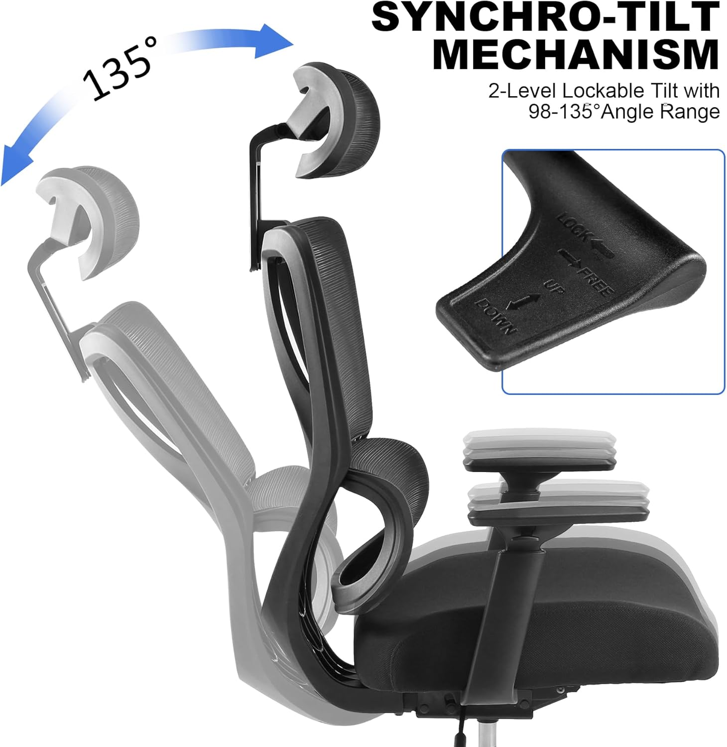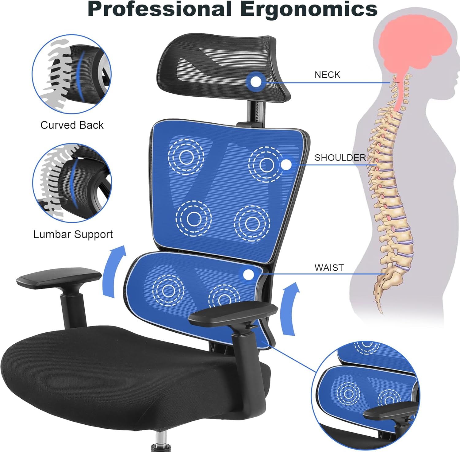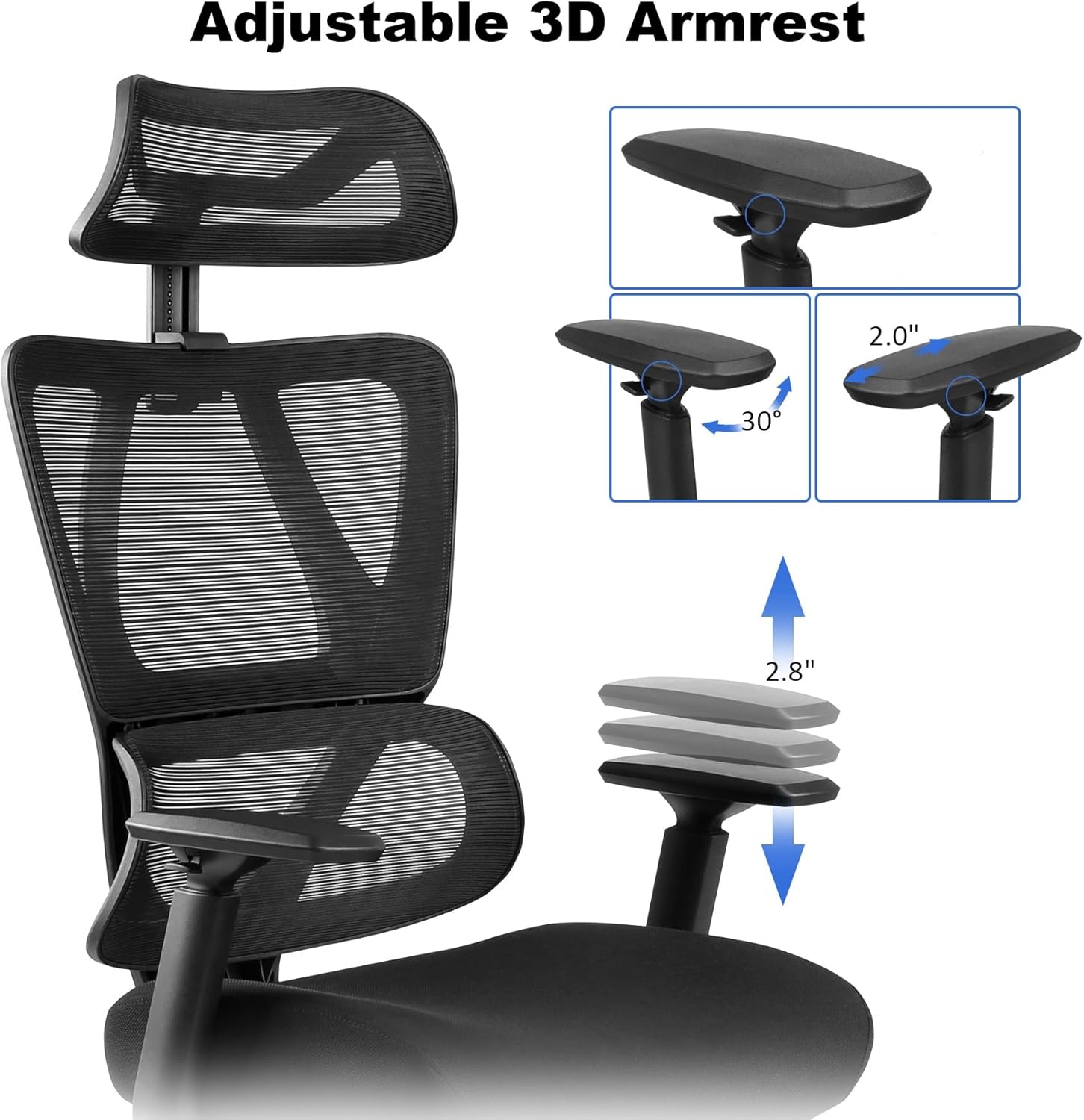 Ergonomic Office Chair, High Back Desk Chairs with Adjustabke Headrest & 3D Armrest, Swivel Executive Chair for Home Office, Black