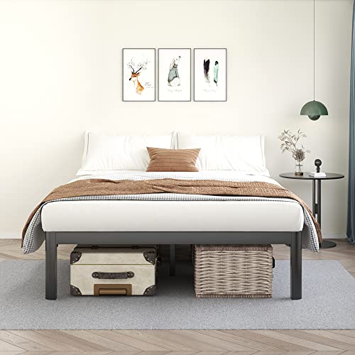 MAF 14 Inch King Platform Bed Frames with Wooden Slats, Black 3500 Lbs Heavy Duty Metal Bed Frame with Anti-Collision Round Legs, No Box Spring Needed, Easy Assembly