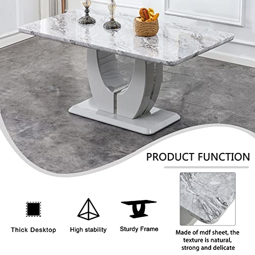 63”Modern Dining Table for 6,Rectangular kitchen table with faux marble tabletop & Ideal for Dining Room, Kitchen Room