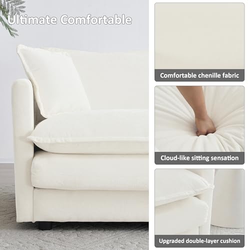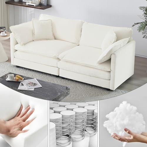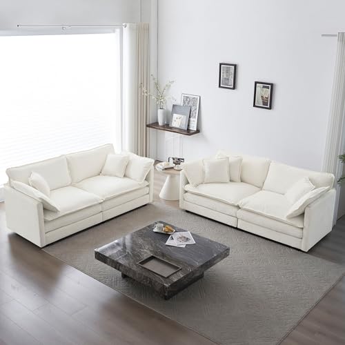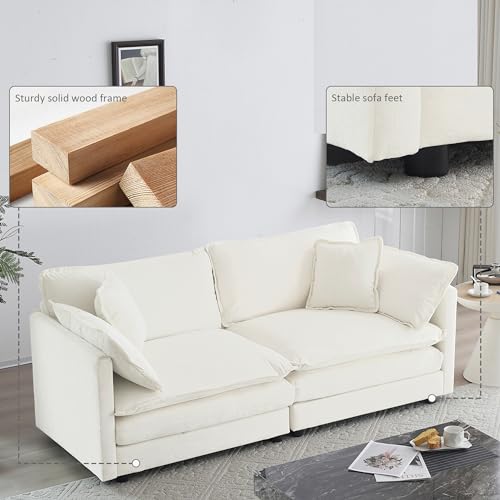 Modern Cloud Couch with Soft Chenille Upholstered, 2 Piece Set, Two 76.7-Inch Comfy Couch for Living Room Home Office, Camel