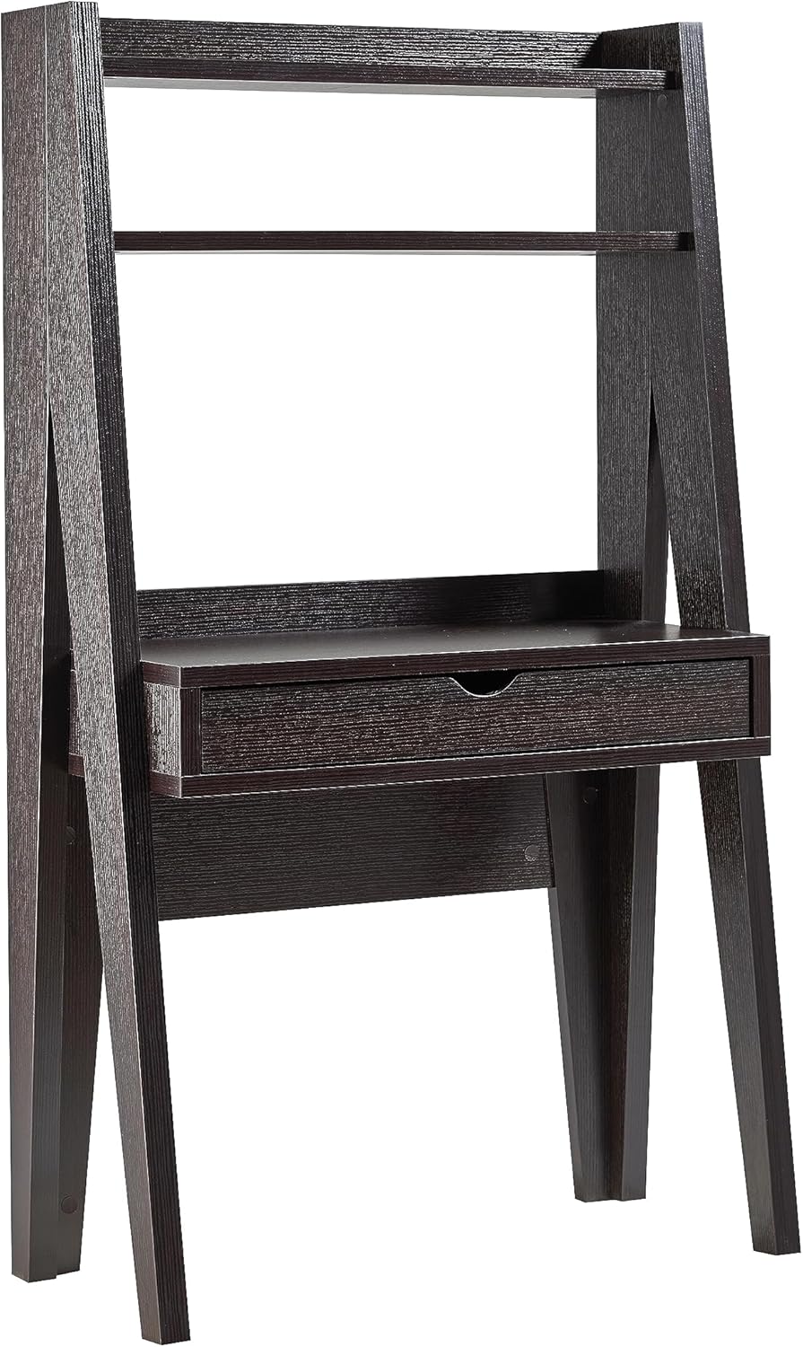 Ladder Desk, Home Office Study Desk with Drawer and Two Shelves in Red Cocoa