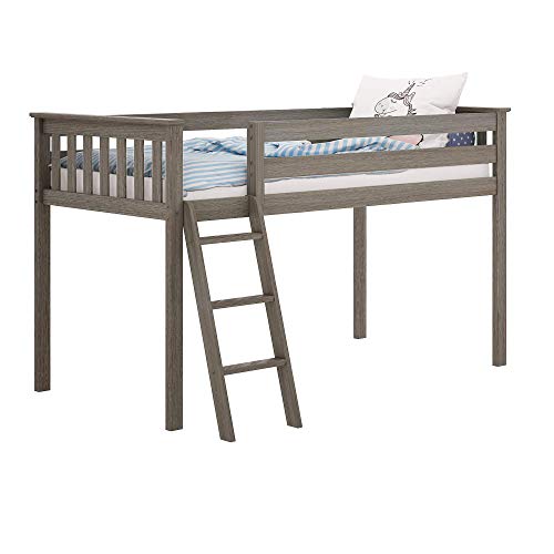 Max & Lily Low Loft Bed, Twin Bed Frame for Kids, Clay & Cotton Underbed Curtains, Blue & White